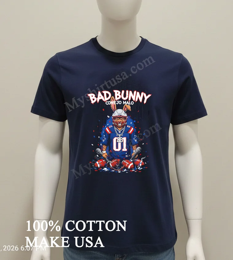 This shirt perfectly captures the buzz! With Bad Bunny’s stadium tours and the Patriots’ enduring legacy, the intersection of music and sports fashion is huge. Whether you’re hitting a watch party, concert, or just making a statement, this tee is IT. You can snag your unique New England Patriots Fans Bad Bunny Conejo Malo Graphic Shirt super fast at myshirtusa.com your spot for Bad Bunny Patriots apparel and Conejo Malo fan gear.