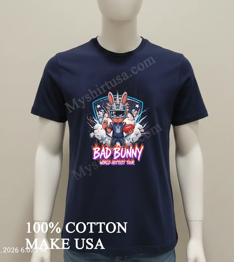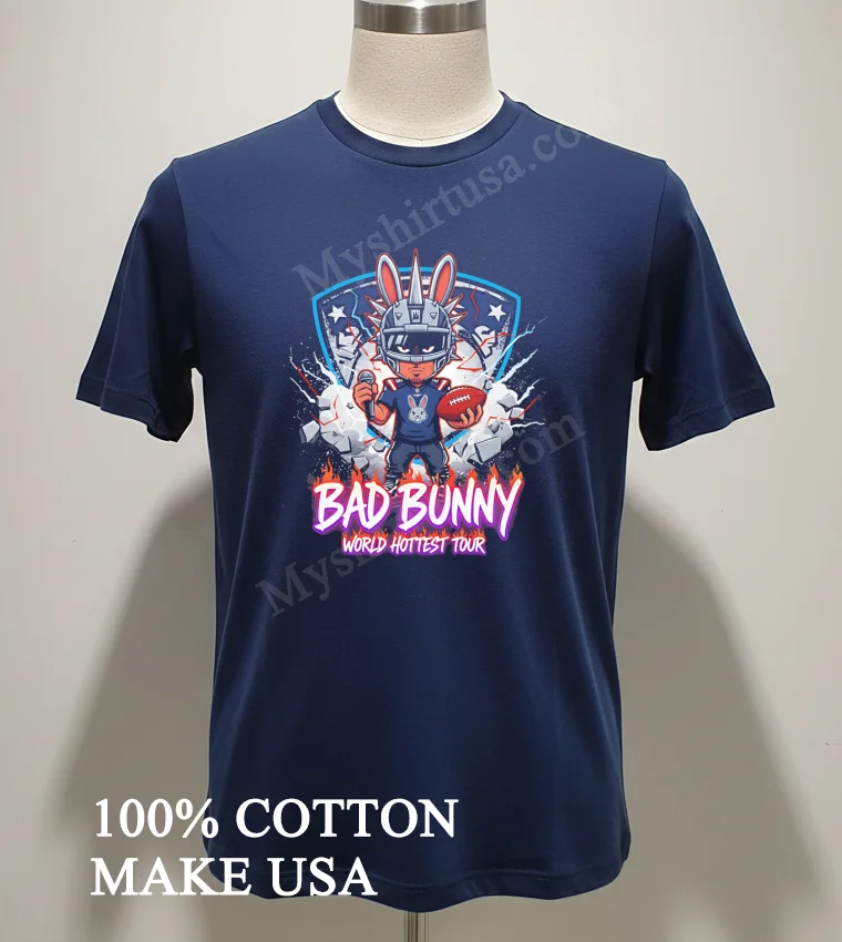 Talk about a cultural moment! That epic mashup of the Patriots, Bad Bunny, and his World’s Hottest Tour? It’s pure genius. Whether you’re tailgating before kickoff, gearing up for a concert, or just chilling with friends, this shirt captures the vibe perfectly. You can easily grab your own slice of this iconic crossover at myshirtusa.com, your go-to for New England Patriots gear, Bad Bunny concert tee, hottest tour merchandise, NFL fan apparel, and all things music and sports crossover fashion.