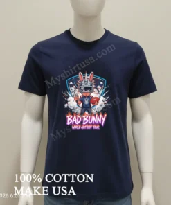 This isn’t just any old tee; the design truly stands out, blending the iconic Patriots logo with Bad Bunny’s vibrant tour graphics in a way that feels both classic and fresh definitely a cut above the usual fan merch you see. Made from 100% American Cotton, it’s super soft, breathable, and has that perfect lived-in feel from the first wear. I love pairing mine with distressed jeans and sneakers for a casual streetwear look, or throwing it under a denim jacket for a night out. To keep it looking sharp, just machine wash cold, tumble dry low, and skip the iron on the print. Want to see what others are saying? Check out the buzz on Reddit’s r/streetwear or TikTok under #BadBunnyPatriots.
