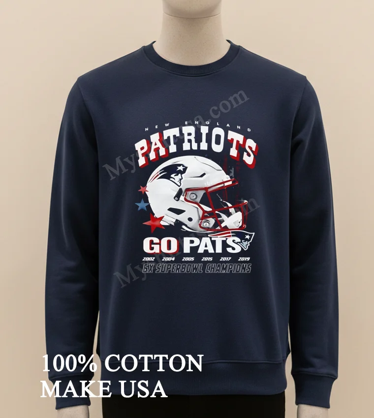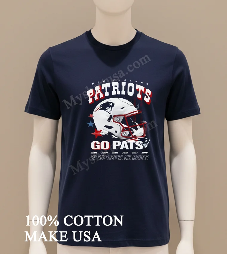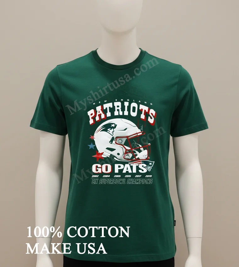 Ready to show your true colors? Why settle for less? This New England Patriots Go Pats 6X Super Bowl Champions Helmet Shirt is 100% American Cotton: soft, stretchy, breathable. Just $23 USD, with 3-5 day US delivery! Embrace that Vintage, Streetwear, American style. High quality, delivered fast. Grab yours from Myshirtusa now! #PatriotsTee #AmericanStyle #GoPats #FanGear #StreetwearUSA