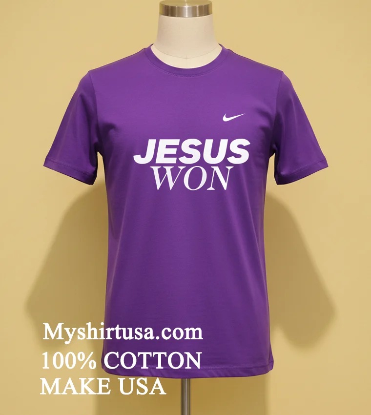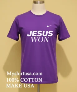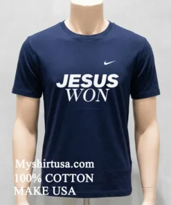 Let’s talk about what makes this tee truly special. First off, the design itself isn’t just printed on; it’s a statement. Imagine that iconic “Jesus Won” message, rendered in a bold, classic font, intertwined subtly with a vibe that screams New England Patriots allegiance, perhaps with an artistic touch that nods to team colors without being overtly branded. It’s distinct, it’s meaningful, and it definitely stands out from the sea of generic team merch. No flimsy, scratchy fabric here either. We’re talking 100% American Cotton soft to the touch, breathable, and with just the right amount of stretch. It’s built to feel good whether you’re jumping up for a touchdown or just chilling on the couch. Style-wise, it’s a masterclass in American streetwear and vintage vibes. Throw it on with your favorite distressed jeans, some classic sneakers, or even layer it under a plaid flannel for that ultimate casual-cool look. To keep this beauty looking fresh, wash it inside out in cold water, tumble dry on low, and for goodness sake, avoid ironing directly on the print. That way, your message stays crisp, and your tee lasts for seasons to come.