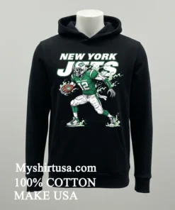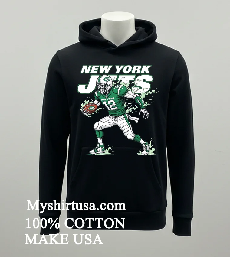 Now, let’s talk about what makes this tee truly special. First off, the design itself: a blazing skeleton player, rocking that iconic Jets green, is just chef’s kiss. It’s a powerful, almost mythical image that goes way beyond a simple team logo. While other shirts might just slap on a crest, this design tells a story a story of undying fandom, passion, and a spirit that just won’t quit, even when the clock runs out. It’s artistic, edgy, and honestly, a conversation starter. You won’t find this kind of raw energy on every rack. And the material? We’re talking 100% American Cotton, which means it’s soft to the touch, breathable, and has that perfect lived-in feel from day one. It’s got a classic crew neck and a relaxed fit, making it super versatile. I mean, you can toss it on with your favorite distressed denim and some fresh kicks for a street-style look, or layer it under an open flannel when the autumn chill hits. It’s not just durable; it’s designed for comfort, which, let’s be real, is king for us Americans. To keep this bad boy looking sharp, just flip it inside out, wash on a gentle cycle with cold water, and lay it flat to dry, or tumble dry low. No harsh bleaches, please! That way, your fiery skeleton player stays vibrant, game after game.