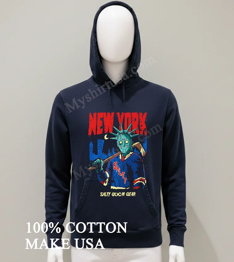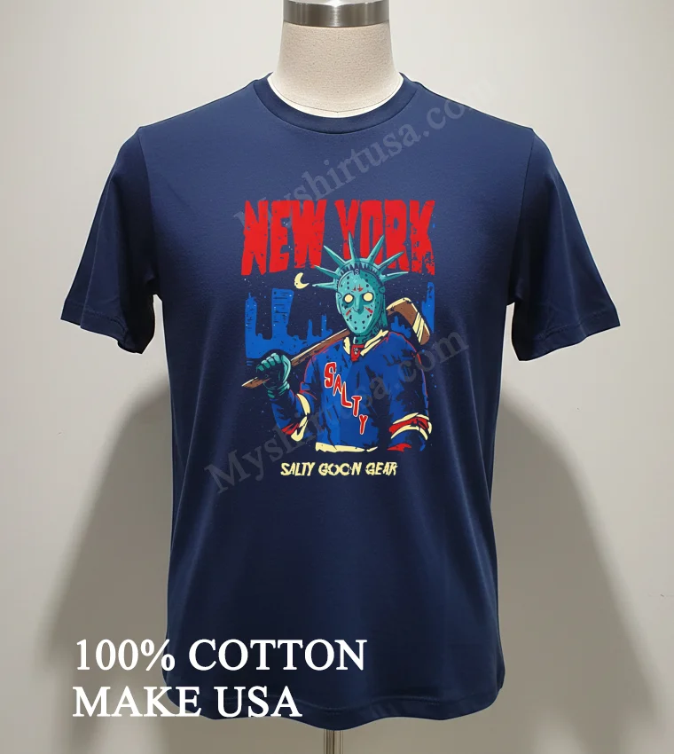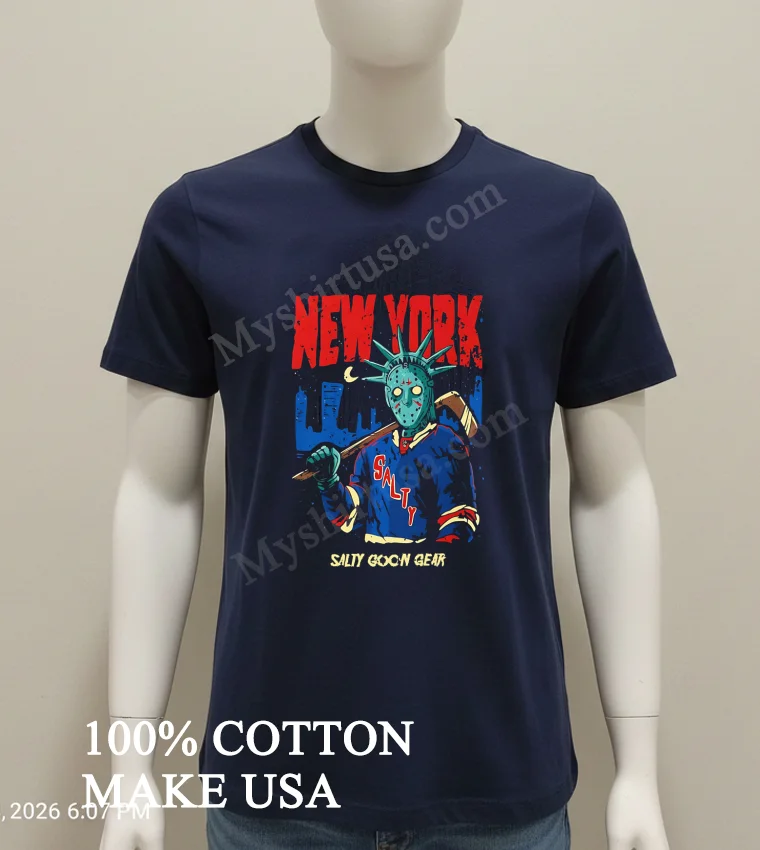Remember that electric energy during the NHL playoffs last year? Especially when the Rangers pulled off that incredible comeback? I was watching a sports analyst on ESPN, and he casually mentioned how “true New York grit” wasn’t just about the players, but about the fans showing up, loud and proud, in gear that really spoke to their city’s spirit. He wasn’t talking about our tee specifically, but it instantly clicked: the New York Salty Goon Gear Statue Liberty Mask Hockey Player Shirt perfectly captures that sentiment! It’s for every fan who bleeds blue and red, who loves the rough-and-tumble of hockey, and who carries a piece of NYC pride everywhere. It’s totally trending right now too, with people embracing graphic tees as a form of personal expression, mixing that vintage sports vibe with modern streetwear. It’s not just a shirt; it’s a statement, perfect for game night, grabbing a slice in Midtown, or just chilling with friends.