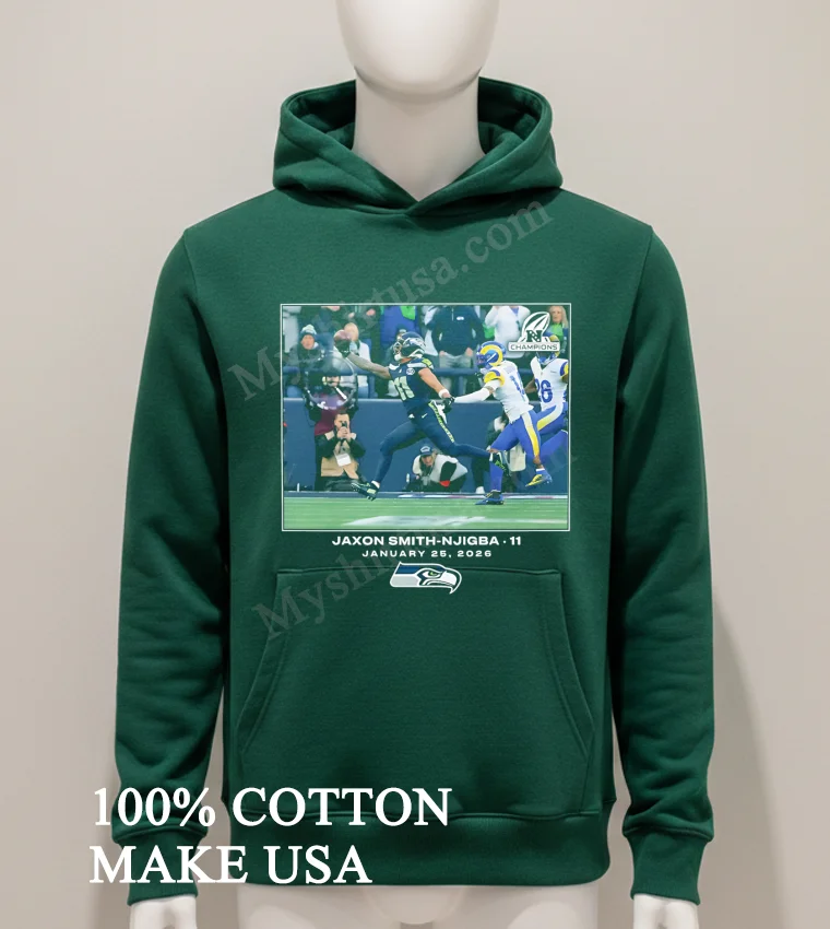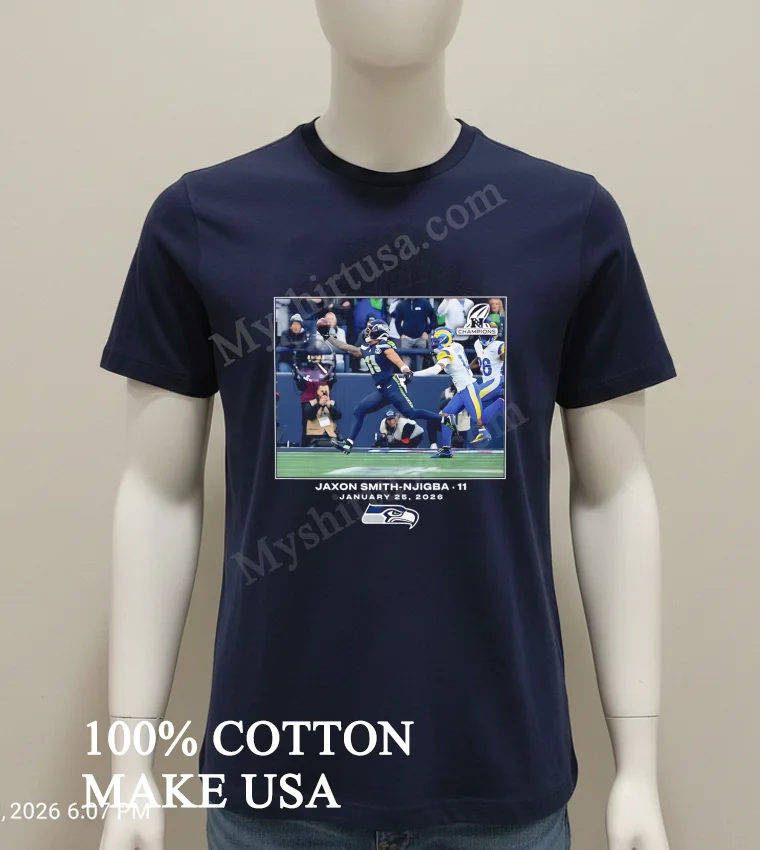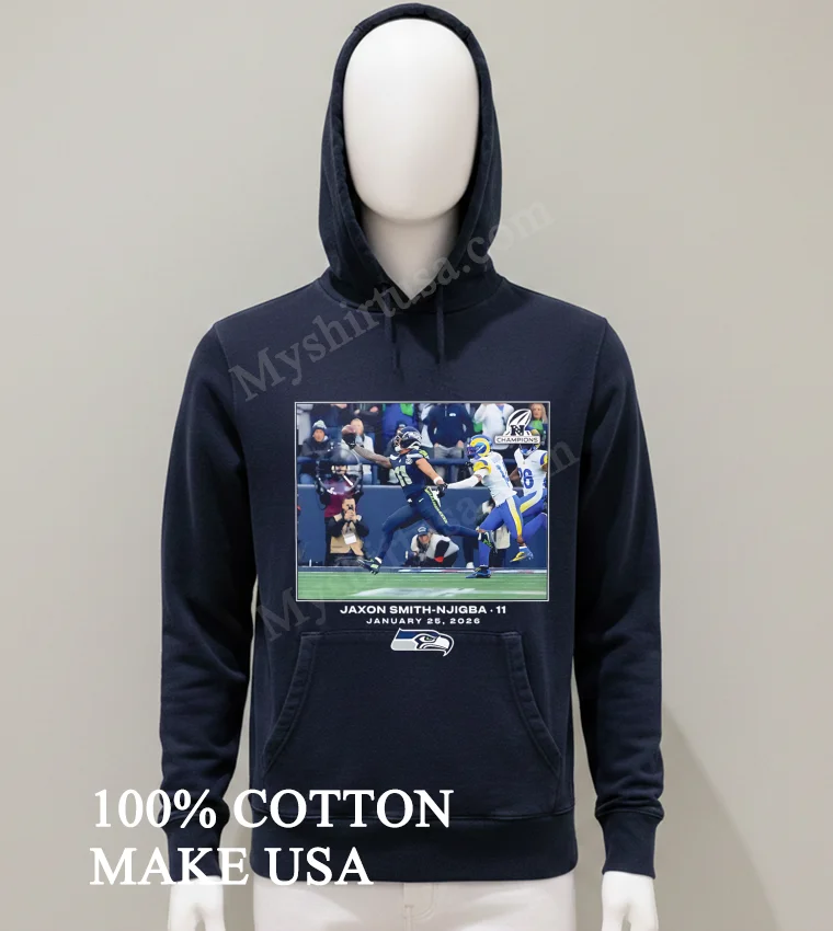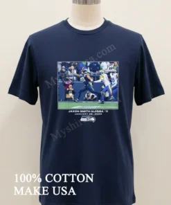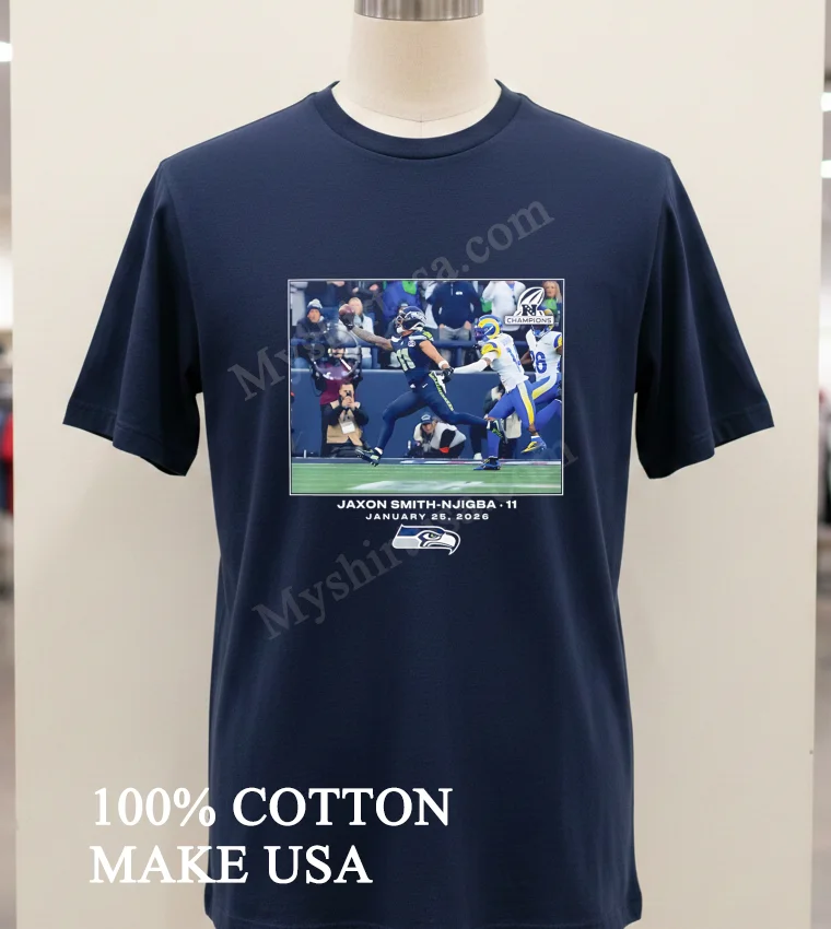 It was a typical Sunday afternoon, the air thick with the scent of grilling burgers and the roar of the crowd from the TV. My buddy Mark, a lifelong Seahawks die-hard, was practically glued to the screen, muttering predictions under his breath. Suddenly, a sports commentator on Twitter, known for his bold takes, dropped a bombshell: “Mark my words, Jaxon Smith-Njigba is going to lead the Seahawks to an NFC Championship by January 25, 2026!” Mark’s eyes lit up. “Can you imagine wearing that moment?” he exclaimed, practically vibrating with excitement. That’s exactly the vibe this shirt captures it’s not just apparel, it’s a statement of faith, a shared dream for every true fan. In today’s world of “gameday glam” and “athleisure chic,” where fan wear has seamlessly blended into everyday street style, this tee isn’t just for the stadium; it’s a bold fashion statement, perfect for anyone ready to manifest victory and celebrate their team with a trendsetting edge.