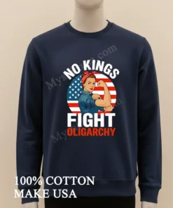 In an era where discussions about power, democracy, and economic justice dominate our feeds, the spirit of “No Kings, Fight Oligarchy” is more relevant than ever. This isn’t just a shirt; it’s a statement echoing from past movements to today’s fashion week runways and grassroots protests. You can easily find this powerful No Kings Fight Oligarchy Rosie The Riveter America Shirt at myshirtusa.com, standing up for American values, empowering fashion, and making a bold patriotic statement that truly speaks to the times.