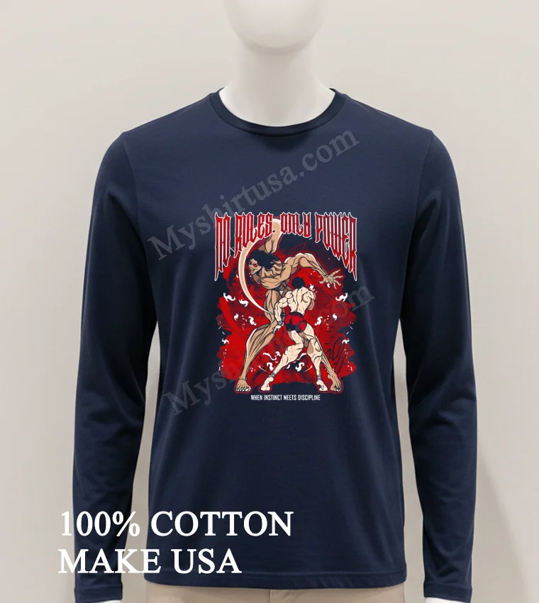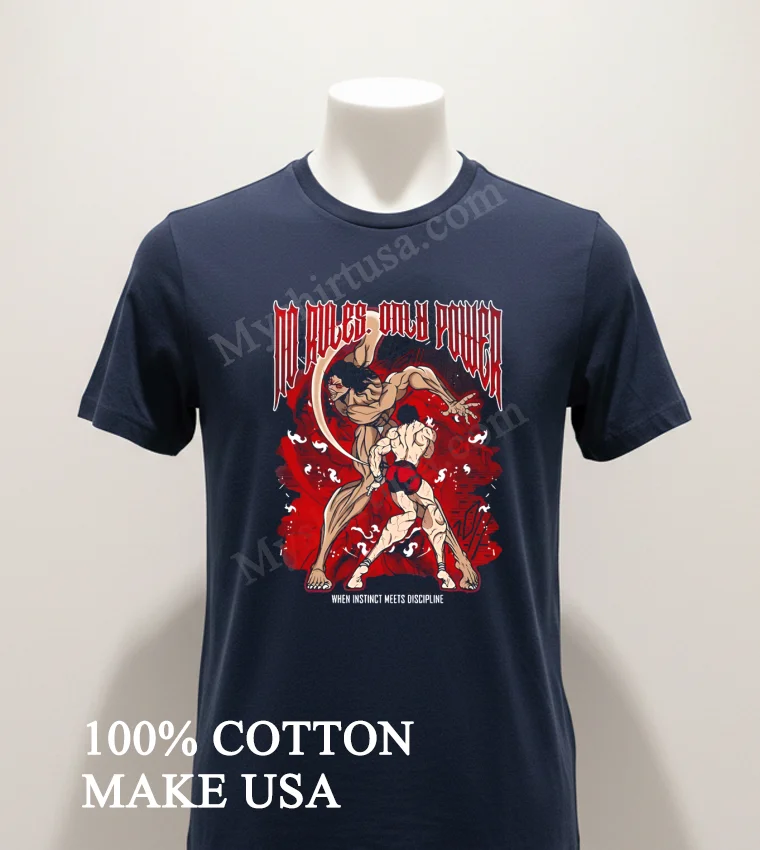 Ready to embody the strength “When Instinct Meets Discipline”? Don’t just watch the fight, wear it! Is your wardrobe screaming for that 100% American Cotton, super soft, stretchy, and breathable tee? Grab your No Rules Only Power Pickle Baki Hanma When Instinct Meets Discipline Shirt for just $23 USD, with free 3-5 day delivery, and unleash your inner fighter. #BakiHanma #AnimeStreetwear #PickleBaki #vintagetshirt #americanfashion #Designtshirt #mytshirt #usashirt #trendshirt #streetwearusa. Only at Myshirtusa.