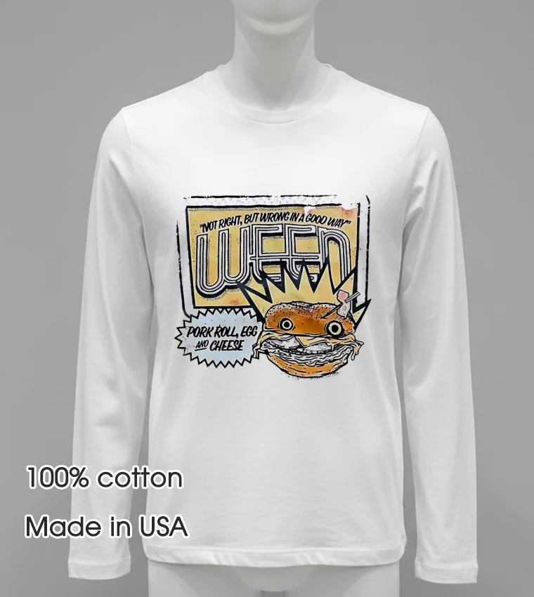 Ready to upgrade your wardrobe with true American style? Why settle for boring when you can wear a statement? Grab your Not Right But Wrong In A Good Way Weed Pork Roll Egg And Cheese Retro T Shirt today! Made with 100% American Cotton, soft, stretchy, and breathable, this vintage-inspired streetwear essential is just $23 USD. Enjoy fast 3-5 day delivery right to your door.