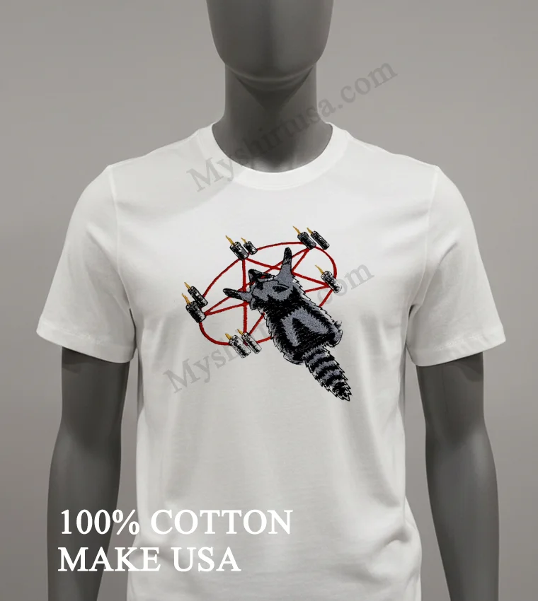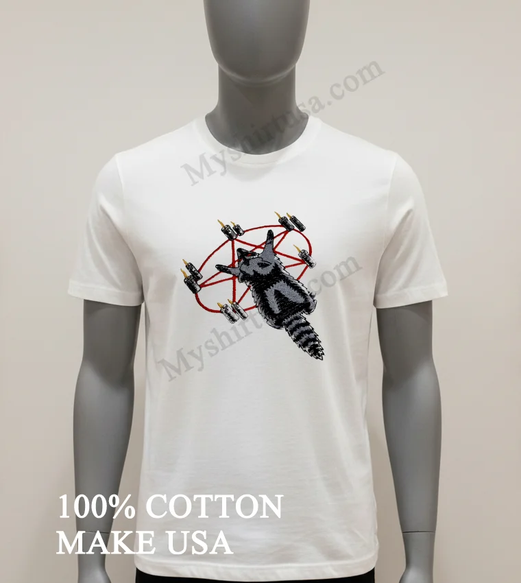 Just last week, indie musician @AltRockQueen tweeted about how mainstream fashion feels so… beige. She challenged fans to wear their personality. This hits on the current shift in American streetwear: moving beyond generic logos to genuine self-expression. We’re seeing ‘Dopamine Dressing’ trend vibrant, quirky pieces that spark joy, a direct counter to the ‘quiet luxury’ aesthetic. If you’re tired of blending into the ‘vanilla girl’ look and crave more edge, this tee is for you. Heading to a local art market, a DIY music show, or just wanting to inject fun into daily errands? Channel that unapologetic, individualistic spirit. The Occult Raccoon Pentagram Ritual With Burning Candles Shirt perfectly captures that vibe a mischievous raccoon, ancient symbols, and burning candles, all in one effortlessly cool statement piece.