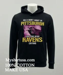 Ready for comfort and style? Why settle for ordinary when you can wear a story? Grab your own On A Quiet Night In Pittsburgh You Can Hear Ravens Crying Shirt today! Crafted from 100% American Cotton soft, stretchy, breathable. Just $23 USD, with speedy 3-5 day delivery in the US. Embrace Vintage, Streetwear, or classic American style.