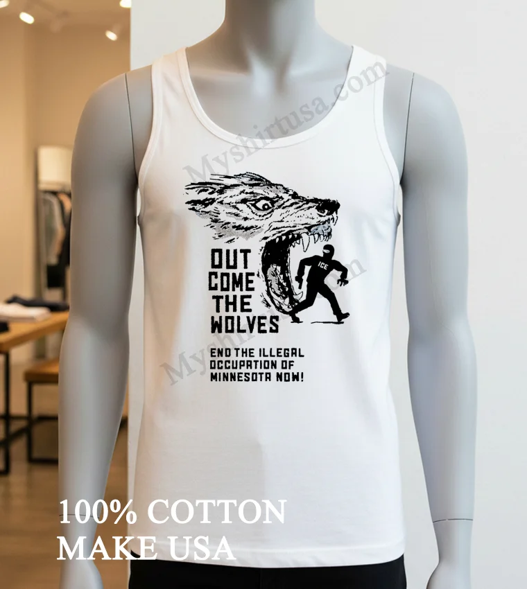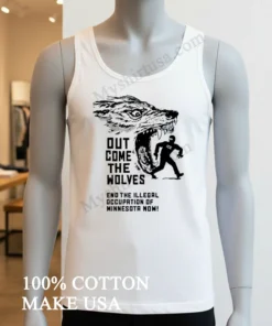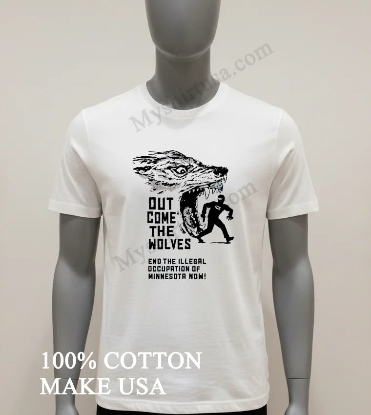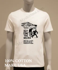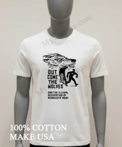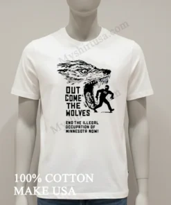 Ready to wear your convictions and spark a conversation? Why settle for ordinary when you can own a piece that speaks volumes? Our Out Come The Wolves End The Illegal Occupation Of Minnesota Now Wolf Shirt is crafted from 100% American Cotton soft, stretchy, breathable, and designed for genuine American style. Grab yours today for just $23 USD! We guarantee quick delivery right to your door within 3-5 days in the US. What are you waiting for? Elevate your Vintage, Streetwear, or American style with a tee that makes a difference.
