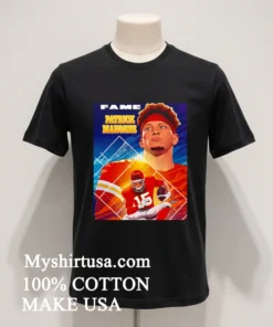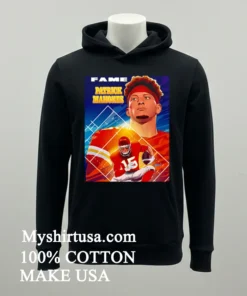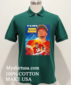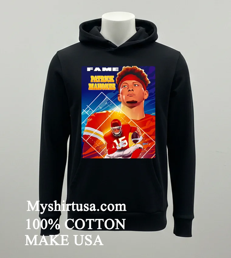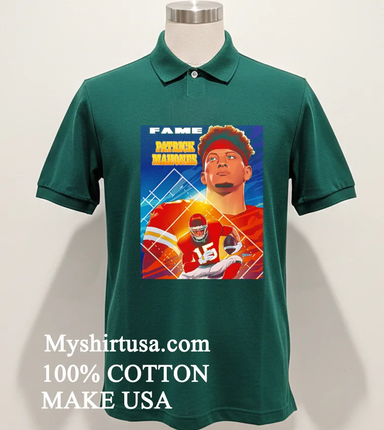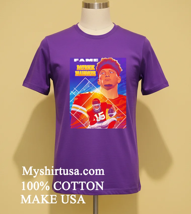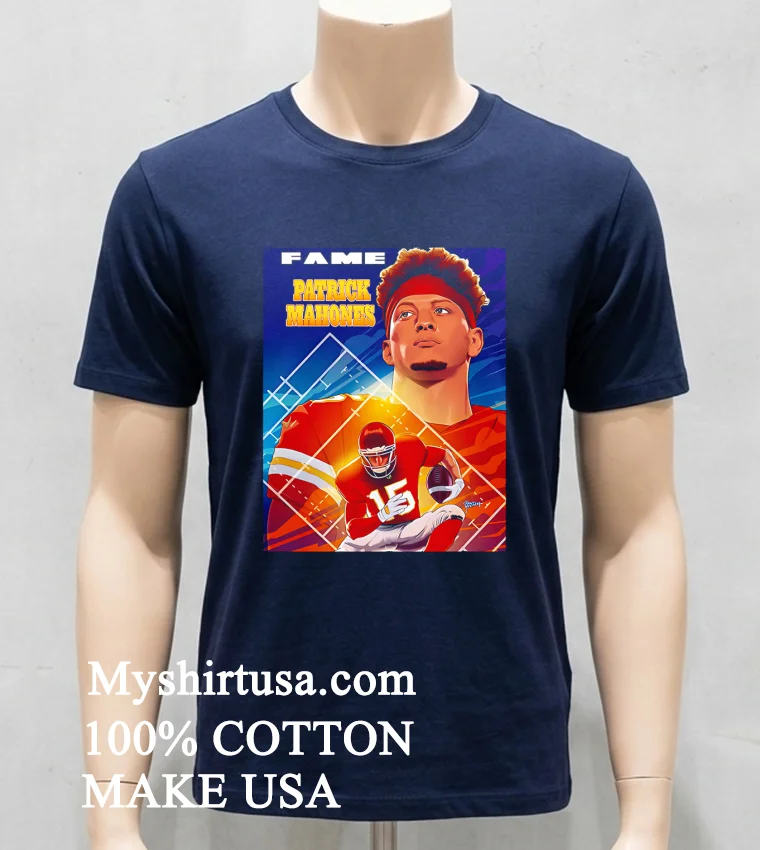 Let’s talk about what makes this shirt truly stand out. Unlike those basic team logo tees or generic player photos, this design is a masterpiece. It features Patrick Mahomes in a dynamic, comic book poster style imagine a superhero splash page, with our QB front and center! The bold lines, vibrant colors, and action-packed artistry transform a simple fan shirt into wearable pop culture. This isn’t just merch; it’s a conversation starter, immediately setting you apart, screaming “I’m a dedicated fan with serious style.”