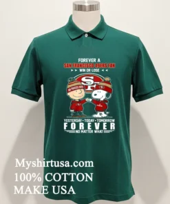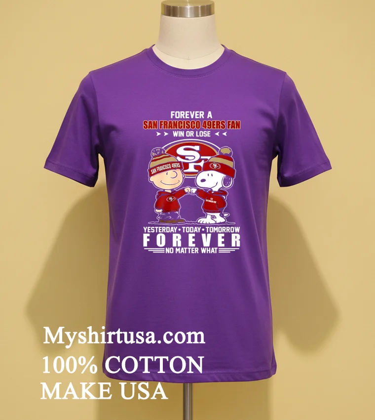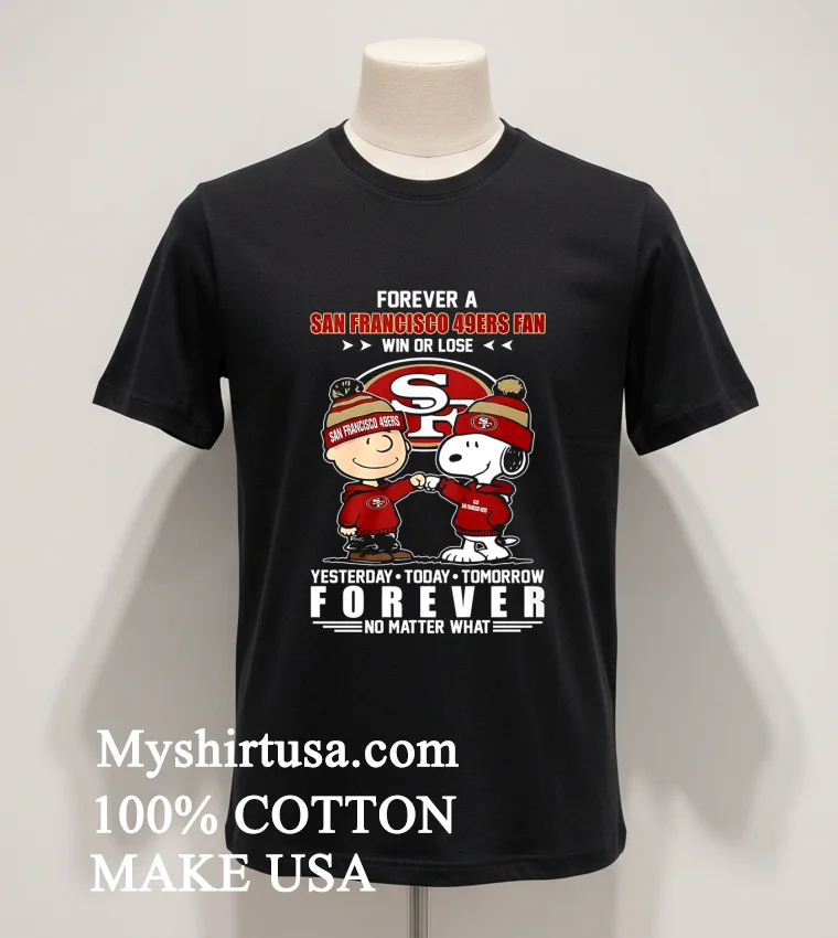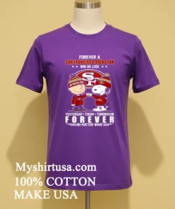 You know that buzz when a package arrives lightning fast? That was me with my new Peanuts Charlie Brown And Snoopy Forever A San Francisco 49Ers Fan Win Or Lose Yesterday Today Tomorrow Forever No Matter What Shirt from Myshirtusa! Reviews aren’t lying: “unbelievable speed,” “top-notch comfort.” Three days, free shipping, right to my door. I love that quick delivery and great quality every time.