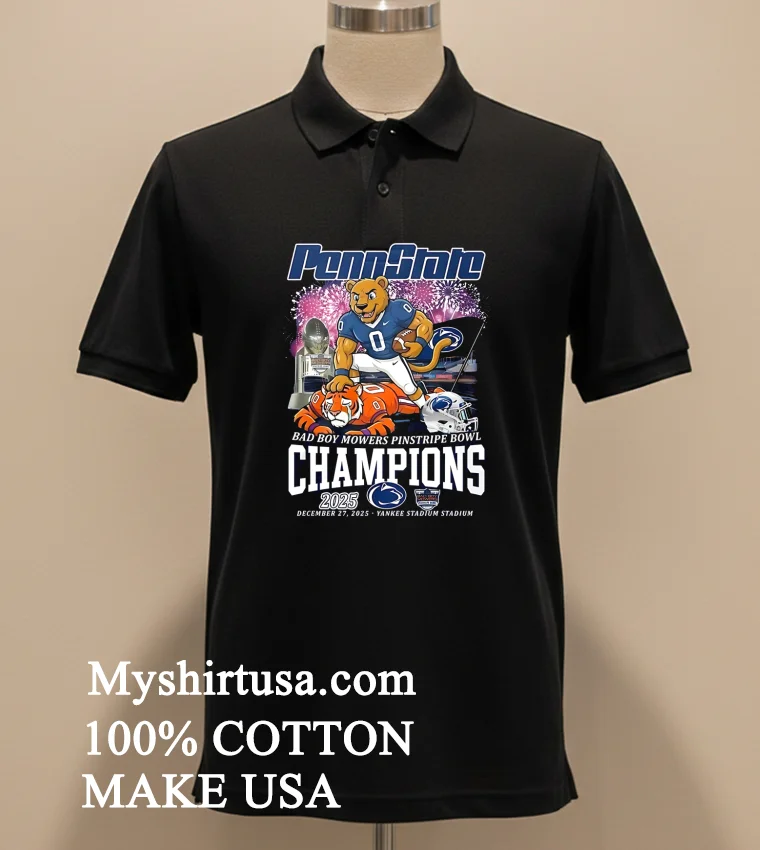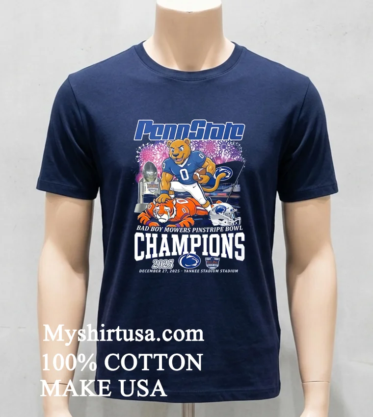 Ready for Nittany Lions victory style? Grab your Penn State Nittany Lions Bad Boy Mowers Pinstripe Bowl Champs 2025 Shirt now! Made from 100% American Cotton soft, stretchy, breathable. Just $23 USD, with fast 3-5 day US delivery. It’s Vintage, Streetwear, American style. Why wait? Elevate your fan gear now at Myshirtusa!