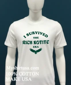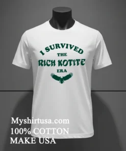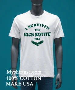 Let’s talk about the design, because this isn’t just a print slapped on a shirt. The “I Survived The Rich Kotite Era” graphic is intentionally understated, almost like an inside joke among the initiated. It’s not flashy; it’s genuine. This subtle brilliance is what sets it apart from those mass-produced, generic fan shirts. It speaks volumes without screaming. Crafted from 100% American Cotton, this tee feels incredibly soft against your skin none of that stiff, cheap material here. It’s got that perfect lived-in feel from the first wear, like your favorite concert tee from years ago. The fit is a relaxed, slightly oversized style, making it incredibly versatile. Pair it with distressed jeans and your favorite sneakers for a classic streetwear look, or throw it on with some cargo shorts for a laid-back weekend vibe. You can even layer it under an open flannel shirt or a denim jacket for those cooler evenings. Caring for it is a breeze, too: machine wash cold with similar colors, turn it inside out to protect the print, and tumble dry on low. Avoid harsh bleach, and it’ll stay looking sharp and feeling soft for countless seasons of Eagles football.