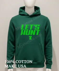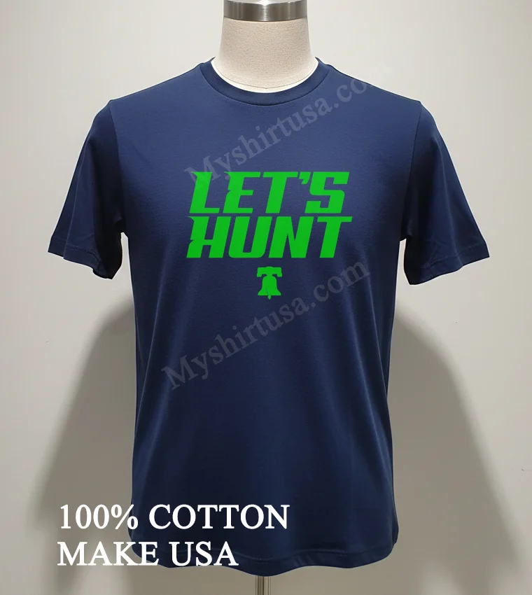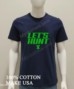 Let’s talk details. The design itself, “Let’s Hunt,” isn’t just words; it’s an attitude. It’s bold, unapologetic, and instantly recognizable to any true Philadelphia fan. Unlike those flimsy, mass-produced shirts that fade after a wash or two, our tees stand out. We focus on premium, ringspun cotton that feels softer and holds its shape better than your average shirt. This isn’t just about showing team spirit; it’s about comfort and durability. The classic crew neck and relaxed fit make it versatile style it oversized with some distressed jeans for a modern streetwear vibe, or tuck it into some chinos for a more vintage, laid-back look. To keep your shirt looking fresh, machine wash cold with like colors, tumble dry low, and please, don’t iron directly on the print. Treat it right, and this shirt will be your faithful companion through many seasons of cheers and victories.