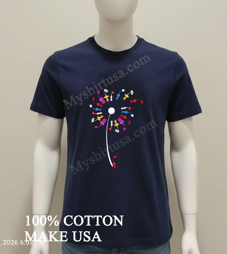 Let’s talk about the shirt itself for a minute, because this isn’t just any old tee. The design elements on this shirt are what truly set it apart. It’s not a giant, in-your-face logo, but a thoughtful, artistic rendition of the beloved Pikmin characters intertwined with delicate dandelion flowers. The colors pop without being garish a perfect blend of whimsical game characters and the serene beauty of nature. It’s got that cool, understated vibe that makes people do a double-take. Unlike those mass-produced, stiff shirts you find everywhere, this one feels premium. We’re talking 100% American Cotton here, which means it’s incredibly soft against your skin, breathable for those hot summer days, and durable enough to withstand countless washes. The cut is a classic, comfortable fit that’s universally flattering, hitting that sweet spot between a boxy vintage look and a more streamlined streetwear aesthetic. I love how easily it styles throw it on with your favorite distressed denim shorts and some classic sneakers for a chill weekend vibe, or layer it under an open plaid shirt with some chinos for a more put-together, casual American look. To keep this gem looking its best, remember to wash it inside out in cold water with similar colors. Tumble dry on low or, better yet, hang it to dry to preserve the print and fabric integrity. And please, no bleach!