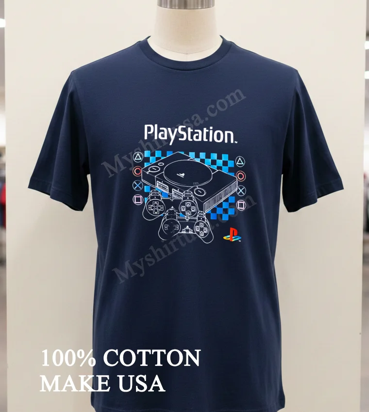 Ready to level up your style? Why settle for less? Get your Playstation Original Console And Controller Blue Checkered Retro Gaming Shirt today! For just $23 USD, this 100% American Cotton tee is soft, stretchy, and breathable. We commit to beautiful tees and fast 3-5 day US delivery. Elevate your Vintage, Streetwear, American style now!