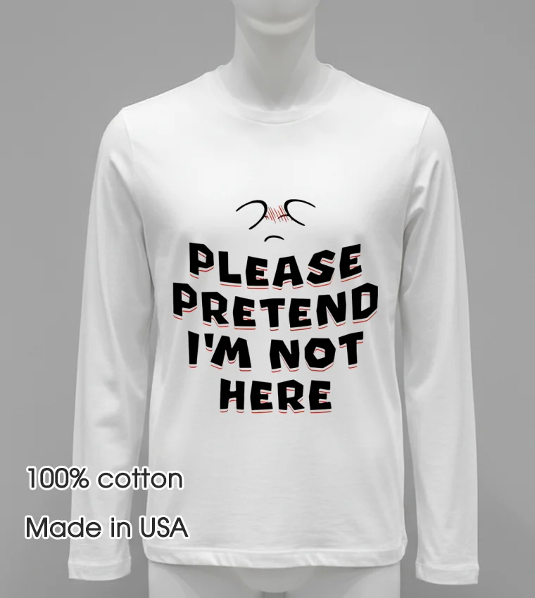 This isn’t just any graphic tee; it’s a masterclass in understated cool. The design of the Please Pretend I M Not Here Shirt is brilliantly simple: bold, clear lettering that speaks volumes without yelling, perfectly centered for maximum impact. Unlike some shirts with busy graphics or questionable fonts, this one nails the “less is more” aesthetic, making it incredibly versatile. It’s the kind of shirt that pairs effortlessly with practically anything in your closet, truly setting it apart. Crafted from 100% American Cotton, the material is incredibly soft, breathable, and has just the right amount of stretch. It feels like that perfectly broken-in vintage tee from day one. I love styling mine oversized with some distressed denim shorts and classic white sneakers for a chill weekend vibe. For a slightly dressier, urban look, I’ll tuck it into a high-waisted pleated skirt with chunky boots, or layer it under an unbuttoned flannel shirt. To keep your favorite tee looking great for ages, wash it inside out in cold water on a gentle cycle. Tumble dry on low heat, or even better, air dry it flat to prevent shrinking and maintain the print’s integrity. Skip the bleach and harsh detergents to ensure the vibrant text stays crisp and clear.