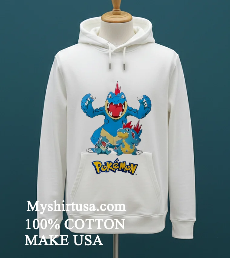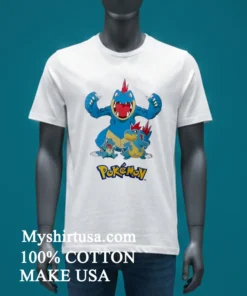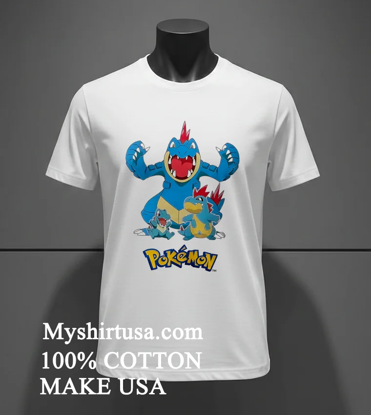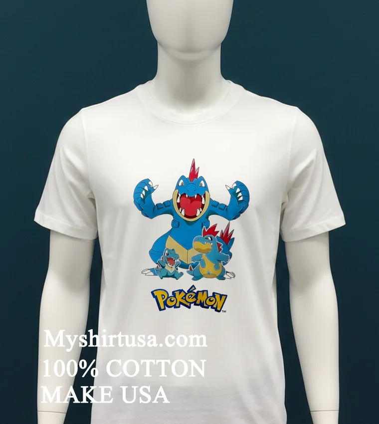 Let’s talk about what makes this shirt a real catch. First, the design it’s not just a single Pokémon; it’s the whole evolution line: the mischievous Totodile, the cool Croconaw, and the powerful Feraligatr, all captured in vibrant detail. Unlike generic character tees that can look a bit… well, basic, this design feels curated, almost like concept art. It’s got that understated cool factor that says, “Yeah, I love Pokémon, but I also have great taste.” Material-wise, we’re talking 100% premium American cotton. It’s soft against the skin, feels substantial but breathable, and has just the right amount of stretch without losing its shape. It’s the kind of tee you can wear all day without feeling restricted, whether you’re gaming, running errands, or meeting friends. Style it with ripped jeans and classic sneakers for a laid-back vibe, or throw it under an open denim jacket with a beanie for that perfect streetwear edge. To keep your Feraligatr looking fierce, always wash it inside out in cold water to protect the print, tumble dry on low, or better yet, air dry it flat. Trust me, a little care goes a long way in keeping that print sharp and the fabric soft for years.