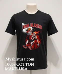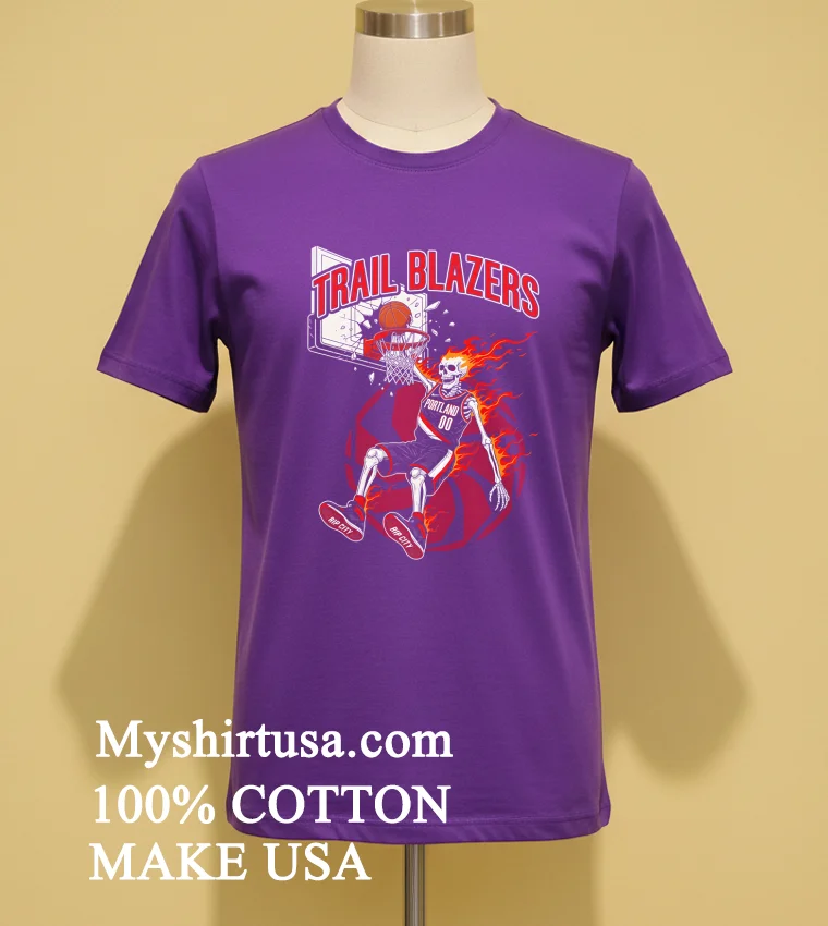 Remember that insane Blazers game last week? Everyone on social media was buzzing, especially after Dame’s clutch three-pointer. It brought back all those classic Rip City vibes. Just yesterday, I saw a tweet from a popular sports analyst, maybe even Shaq, joking about needing ‘more fire’ in his game-day wardrobe. And boom, instantly, the image of our Portland Trail Blazers Men’s Basketball Skeleton Player Fire Shirt flashed in my head. This isn’t just a shirt; it’s a statement for those nail-biting moments, those watch parties, or even just hitting the courts in a nod to your team. It fits perfectly into today’s ‘vintage athleisure’ trend, where comfort meets classic sports aesthetics, but with a modern, edgy twist. Think less ‘quiet luxury’ and more ‘loud loyalty’ perfect for showing off your Blazers pride while staying on top of what’s hot in streetwear right now. This T-shirt isn’t just for game night; it’s for anyone who lives and breathes basketball and wants to rep their team with a fresh, bold look that stands out.