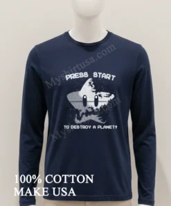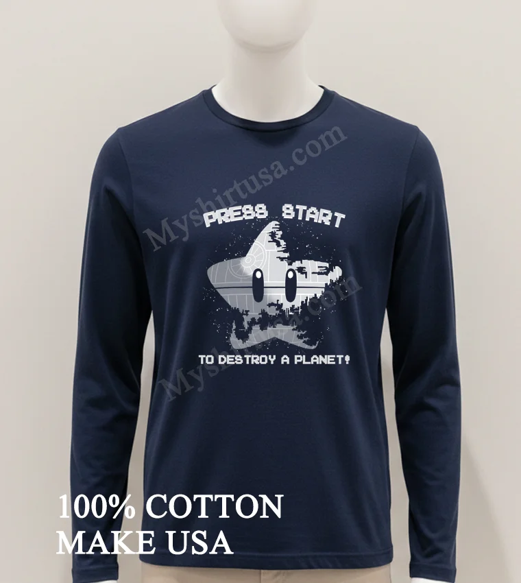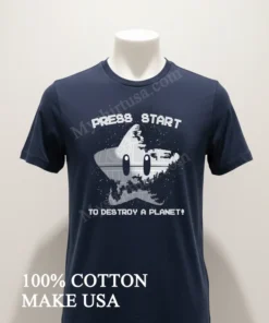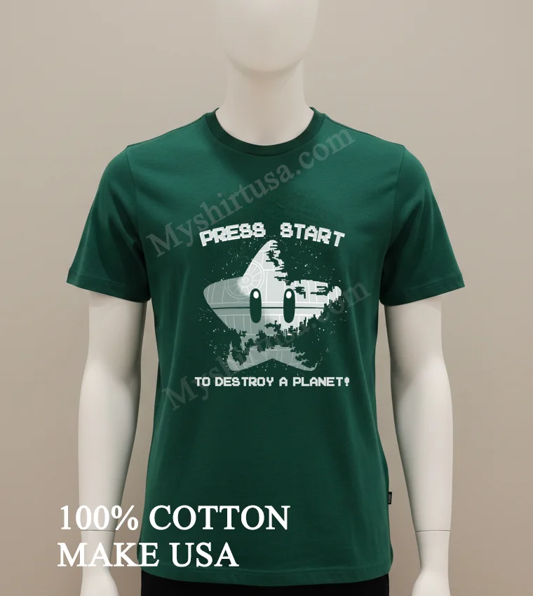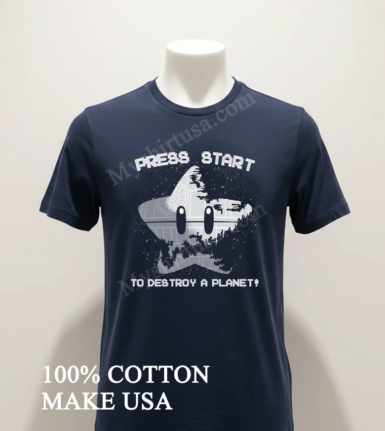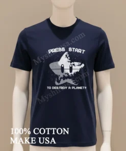 Ready to level up your wardrobe? Why settle for boring when you can wear a story that turns heads? Your new Press Start To Destroy A Planet Death Star Super Mario Luma Shirt awaits! Crafted from 100% American Cotton soft, stretchy, breathable for just $23. Enjoy fast 3-5 day US delivery. What’s stopping you from rocking this uniquely Vintage, Streetwear, American style? Grab yours at Myshirtusa today!