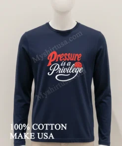 Alright, let’s talk details because this isn’t just some basic, flimsy tee. The “Pressure Is A Privilege” graphic here isn’t just slapped on; it boasts a unique, slightly distressed vintage vibe that immediately sets it apart from those generic, cracking prints you see everywhere. It makes a powerful statement without ever having to shout. What truly makes it my favorite? It’s crafted from 100% premium American cotton, making it incredibly soft the kind of shirt you instinctively reach for on a lazy Sunday morning or when heading out the door for a quick errand. That relaxed, classic fit is just perfect for throwing on with your favorite worn-in jeans, some fresh sneakers, or even layering under an open flannel for that effortlessly cool American streetwear look. When I pull it on, it gives me this little boost, like I’m ready to tackle whatever the day throws at me, whether it’s a big presentation or just a challenging workout. To keep it looking its absolute best and lasting for years, simply machine wash cold, inside out, and tumble dry low. Seriously, avoid harsh bleach it’s a shirt, not a science experiment! This tee is blowing up on TikTok and Instagram right now; search #BasketballFashion and #StreetwearUSA to see how everyone’s rocking it, or dive into Reddit’s r/Streetwear for endless styling inspiration and discussions.