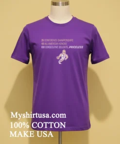 Now, let’s talk about what makes this tee a slam dunk compared to generic fan gear. The design itself is a masterpiece of understated pride, prominently featuring those incredible stats: “26 Conference Championships,” “49 All American Honors,” and that staggering “100 Consecutive Sellouts.” But the kicker? “Priceless.” It’s a bold declaration, not just a list of achievements, reminding everyone that some things, like true fandom and legendary status, can’t be bought. Unlike thin, shapeless tees that lose their luster after a wash or two, our shirt is crafted from premium, soft-spun cotton. It has that perfect vintage-inspired, slightly relaxed fit that’s currently all the rage in American streetwear. You can rock it oversized with your favorite baggy jeans and chunky sneakers for a casual vibe, or layer it under an open flannel shirt for a classic, laid-back look. Want to make sure your Purdue Basketball tee stays looking sharp? Just turn it inside out, wash with similar colors in cold water, and tumble dry on low. Skip the harsh bleaches; it’ll keep that “Priceless” graphic vibrant for seasons to come.