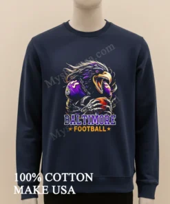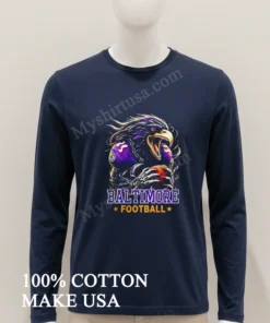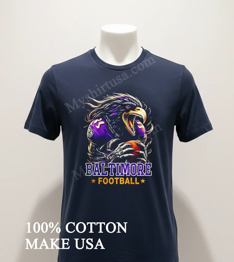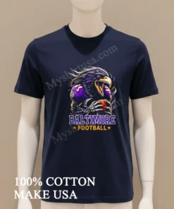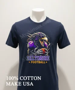 Let’s dive into the good stuff. The design itself isn’t just a basic print; it’s a statement. That striking raven head, eyes blazing, fiercely clutching the football against a backdrop of deep purple it’s bold, it’s iconic, and frankly, it just hits different. It totally outshines those tired, generic team logos everyone else is wearing, offering a true piece of wearable art. We’re talking 100% premium American Cotton here, folks. It’s got that perfect weight not too thin, not too thick making it incredibly soft, breathable, and it drapes perfectly, giving you that effortless cool. I usually rock mine with some ripped jeans and classic high-tops for that authentic streetwear vibe, or throw it on under an open plaid shirt for a laid-back, vintage American style that never goes out of fashion. To keep that vibrant print and soft feel intact, always wash it inside out in cold water, gentle cycle, and tumble dry on low. Avoid harsh bleaches and high heat treat it right, and it’ll be your game-day favorite for seasons to come! Want to see how real fans are styling it? Head over to Reddit’s r/NFL or check out Instagram and TikTok with #BaltimoreFanStyle you’ll find tons of inspiration!