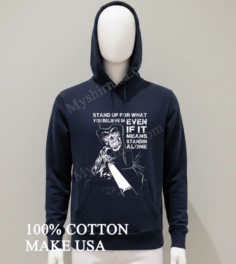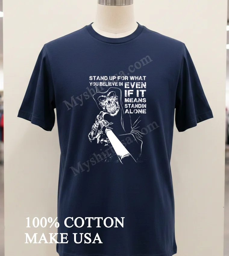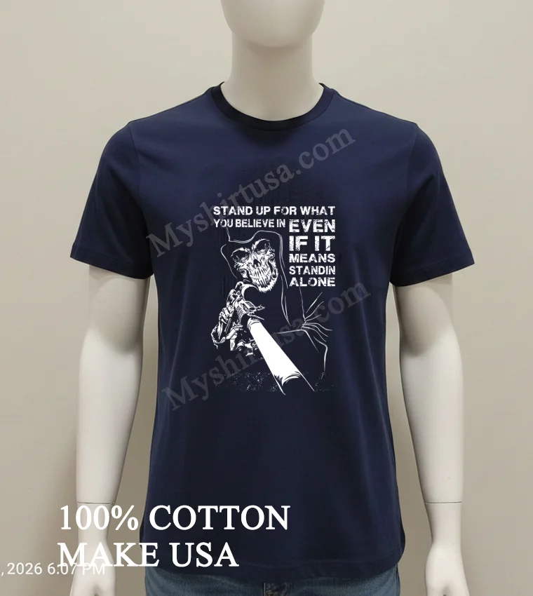 Now, let’s talk about the shirt itself. Forget those flimsy, mass-produced tees that lose their shape after one wash. The Reaper Gun Stand Up For What You Believe In Standin Alone Shirt stands out with its bold, evocative design. The imagery of the reaper, often a symbol of ultimate finality and conviction, combined with the subtle ‘gun’ element (interpreted here as a tool for defense of belief, not aggression), truly captures the spirit of conviction. The typography is strong and unapologetic, making it more than just a design; it’s a declaration. Made from 100% premium American cotton, this shirt isn’t just soft; it’s built to last. It boasts that ideal vintage-inspired, slightly worn-in feel right out of the package, yet it’s robust enough for everyday wear. Its classic crew neck and relaxed fit make it incredibly versatile. Style it with ripped jeans and a leather jacket for a concert, throw it on with cargo shorts for a casual weekend, or layer it under an open flannel for a cool, laid-back American look. To keep this gem looking its best, wash it inside out in cold water, and tumble dry on low or, even better, hang it to dry. Avoid bleach, of course, and if you need to iron it, do so inside out to protect that incredible graphic. Treat it right, and it’ll be a staple in your wardrobe for years.