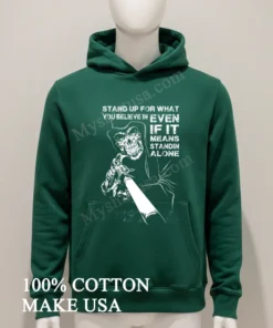 Ready to make a powerful statement without saying a word? Don’t just wear a shirtwear your conviction. Grab your Reaper Gun Stand Up For What You Believe In Standin Alone Shirt today, crafted from 100% American Cotton that’s soft, stretchy, and breathable. Priced at just $23 USD, and delivered to your doorstep in 3-5 days in the US. Isn’t it time your wardrobe reflected your true spirit? Embrace the Vintage, Streetwear, American style that speaks volumes.