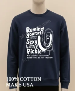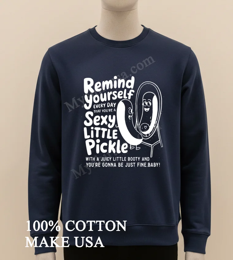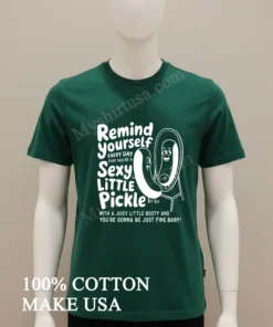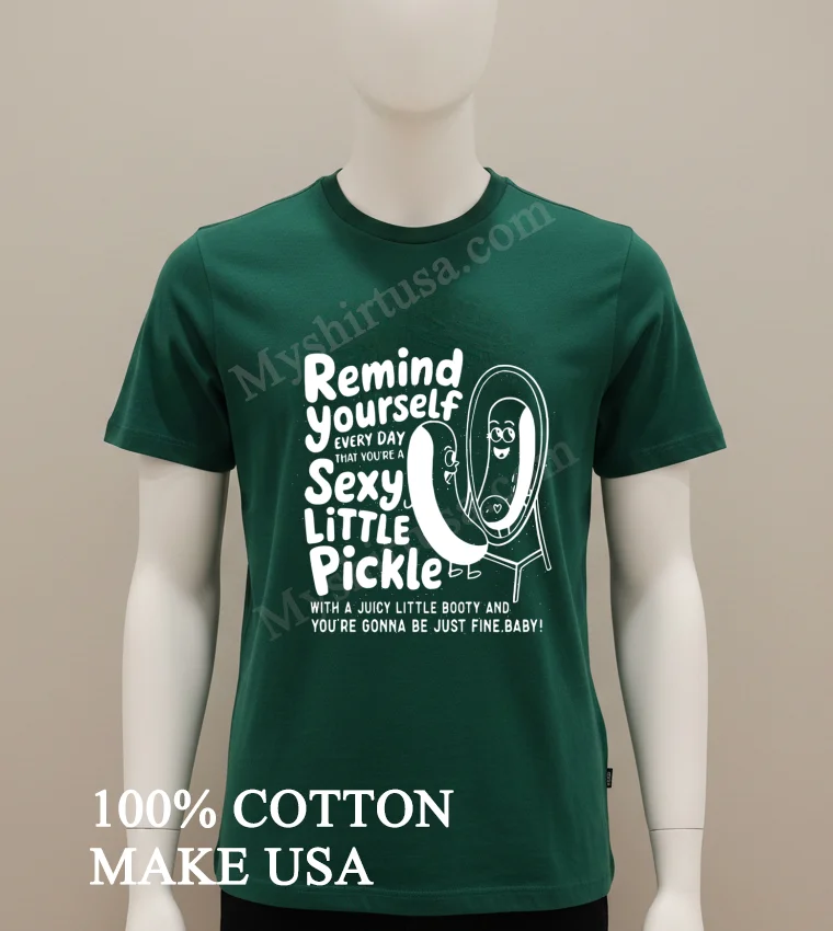 Remember Lizzo owning her space at the VMAs, making everyone feel good about themselves? Or the ‘dopamine dressing’ trend, picking outfits that genuinely made you happy? That’s the exact energy the Remind Yourself Every Day Sexy Little Pickle Booty Mirror Cartoon Shirt brings. Imagine scrolling TikTok, seeing ‘body positivity’ and ‘self-love’ trends everywhere. This isn’t just a shirt; it’s a mood. It’s for those mornings needing a chuckle from the mirror, a reminder that life’s too short not to feel good in your own skin. Heading to a casual brunch, a friend’s BBQ, or just running errands? Inject some quirky confidence. While ‘quiet luxury’ trends, so does ‘maximalism’ and self-expression. This tee cuts through the noise. It’s a statement piece in today’s ‘thrift flip’ culture, a unique find standing out from fast fashion. It’s about personal style, embracing fun, sustainable fashion with humor.