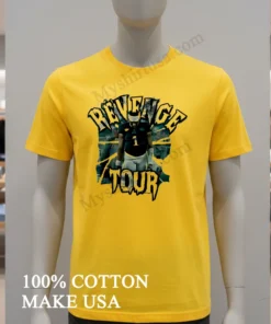 Let’s talk about the shirt itself, because honestly, I’ve owned a lot of tees, but this one hits different. First off, the design it’s bold yet tastefully done. The ‘Revenge Tour’ graphic isn’t some flimsy iron-on; it’s a high-quality print that looks like it’ll last. It’s got that perfectly worn-in, vintage-inspired feel, even when it’s brand new, which is a huge plus in today’s fashion landscape where comfort meets authenticity. Compared to those mass-produced, stiff shirts you often find, this one feels premium. The cotton is incredibly soft, breathable, and has just the right amount of stretch not too tight, not too baggy. It’s that ideal relaxed fit that pairs effortlessly with anything. I love throwing it on with my favorite distressed jeans for a casual weekend look, or layering it under an open flannel shirt or a denim jacket for a classic Americana vibe. For styling, think white sneakers, a baseball cap, or even a simple chain necklace to elevate the streetwear aesthetic. Now, to keep this beauty looking its best, a little care goes a long way. Always turn it inside out before washing to protect the print. Use cold water on a gentle cycle, and skip the harsh bleaches. Tumble dry on low heat, or even better, air dry it flat to prevent shrinking and keep that soft feel. Trust me, treat it right, and this shirt will be your go-to for years.