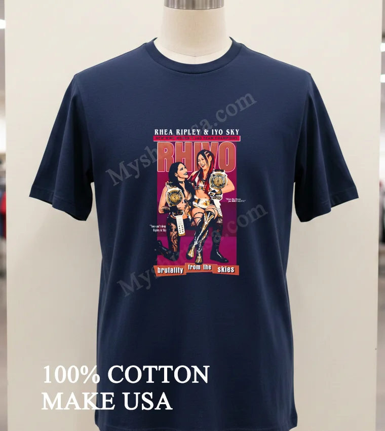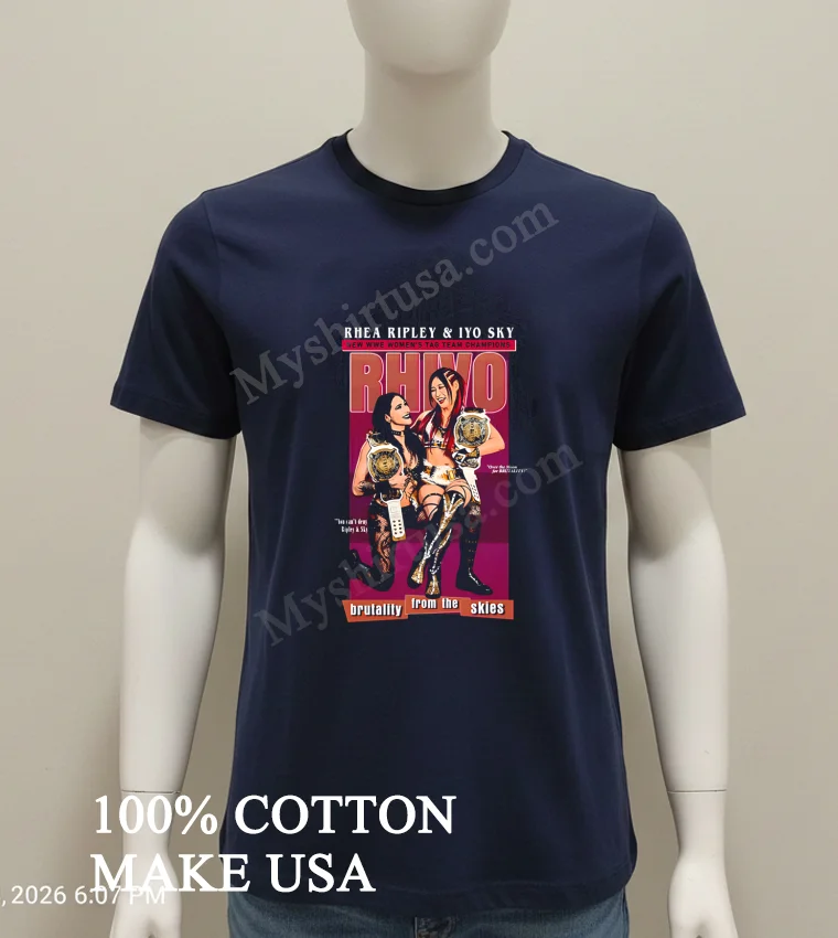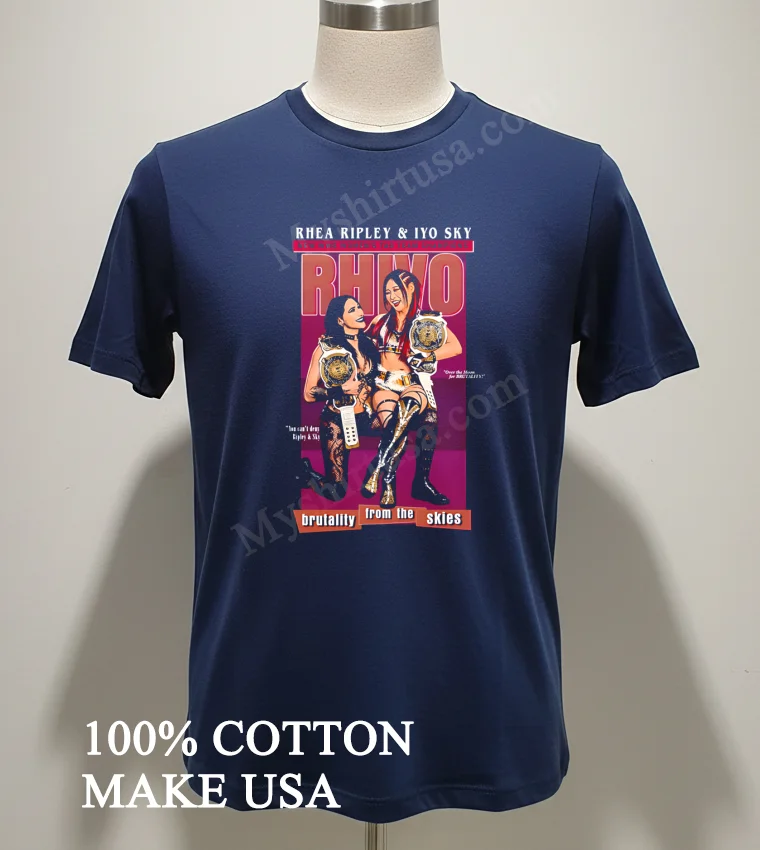 Now, let’s talk details because this isn’t just any T-shirt. The design on this tee, “Rhivo Brutality From The Skies,” isn’t some bland, mass-produced graphic. It’s a statement, capturing the dynamic energy and sheer force of Rhea Ripley and Iyo Sky in a way that truly pops. Unlike generic concert tees that fade after a few washes, this print is vibrant, sharp, and designed to last, reflecting that premium feel we Americans expect from our everyday wear. We’re talking about a shirt crafted from 100% pure American Cotton meaning it’s incredibly soft right out of the package, breathable for those hot summer days, but also sturdy enough to handle daily adventures. The classic crew neck and short-sleeve cut give it that timeless, versatile style. You can rock it with your favorite distressed denim for a casual, laid-back vibe, layer it under an open flannel shirt for a touch of grunge, or even pair it with some fresh joggers and sneakers for that ultimate athleisure look that’s everywhere right now. And to keep it looking fresh? Easy peasy. Turn it inside out before washing in cold water, tumble dry on low, and please, skip the bleach. That way, your shirt’s epic design and super-soft feel will stay with you for countless moments of “Rhivo Brutality” fandom.
