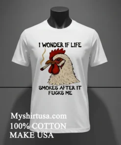 Remember that viral moment during the last Met Gala after-party? Someone mentioned how exhausting navigating life’s absurdities can be, almost like a sarcastic jab at the rat race. That comment instantly brought to mind the sheer, unapologetic honesty of the Rooster I Wonder If Life Smokes After It Fucks Me Shirt. It’s not just a shirt; it’s a whole mood for anyone who’s ever felt life throw a curveball and just wanted to throw their hands up and ask, “Seriously?” This isn’t just for a specific event; it’s for those everyday battles. It’s for the person who needs a good laugh while navigating the “quiet quitting” trend at work, or for the weekend warrior who just wants to kick back after a week of “dopamine dressing” for the office. It speaks to the person who appreciates a bit of ironic humor, perfectly blending into the current street style where graphic tees are having a massive moment, often paired with oversized blazers or distressed denim for that effortless, cool-kid vibe.