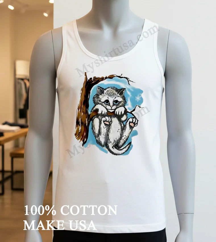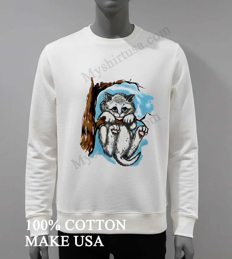 Ready to wear your heart on your sleeve and make a truly unique statement? Why settle for anything less when you can own a piece that tells a story and feels amazing? We’re talking 100% American Cotton, unbelievably soft, stretchy, and breathable, all for just $23 USD! Plus, enjoy lightning-fast 3-5 day US delivery. Whether your vibe is Vintage, Streetwear, or classic American style, let the Sad Blue Eyed Kitten Cat Hanging On Tree Branch Shirt from Myshirtusa become your next obsession.