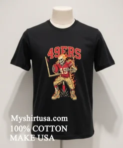Now, let’s talk about what makes this tee truly stand out. Forget those bland, mass-produced shirts you see everywhere. This isn’t just a logo slapped on cotton; it’s a statement piece. The design elements of that burning skeleton player are incredibly detailed, popping with a vibrant intensity that grabs attention without being overwhelming. It captures the fierce, undying spirit of the 49ers faithful in a way that’s unique and, frankly, a little bit badass. Unlike some flimsy alternatives, this shirt is crafted from 100% American Cotton, feeling incredibly soft and breathable against your skin, perfect for everything from a scorching tailgate party to a cool autumn evening. It’s got that comfortable, slightly relaxed American streetwear fit that looks great on anyone. Pair it with distressed denim and sneakers for a casual game-day look, or layer it under a plaid flannel shirt for that classic vintage, grunge vibe. And caring for it? Simple: cold wash, inside out, tumble dry low. This isn’t a one-season wonder; with proper care, this tee is built to last, keeping its vivid design and soft feel wash after wash.