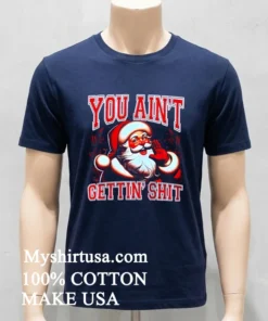 Let’s get down to what makes this tee truly stand out. Forget those thin, scratchy shirts that lose their shape after one wash. The design on this Santa Claus You Ain’t Gettin Shit Shirt isn’t just a funny phrase; it’s a statement. The bold, clear font is printed with a quality that feels like it’s part of the fabric, not some cheap iron-on. It’s got that slightly distressed, vintage feel that’s super popular right now, giving it an authentic, lived-in look.