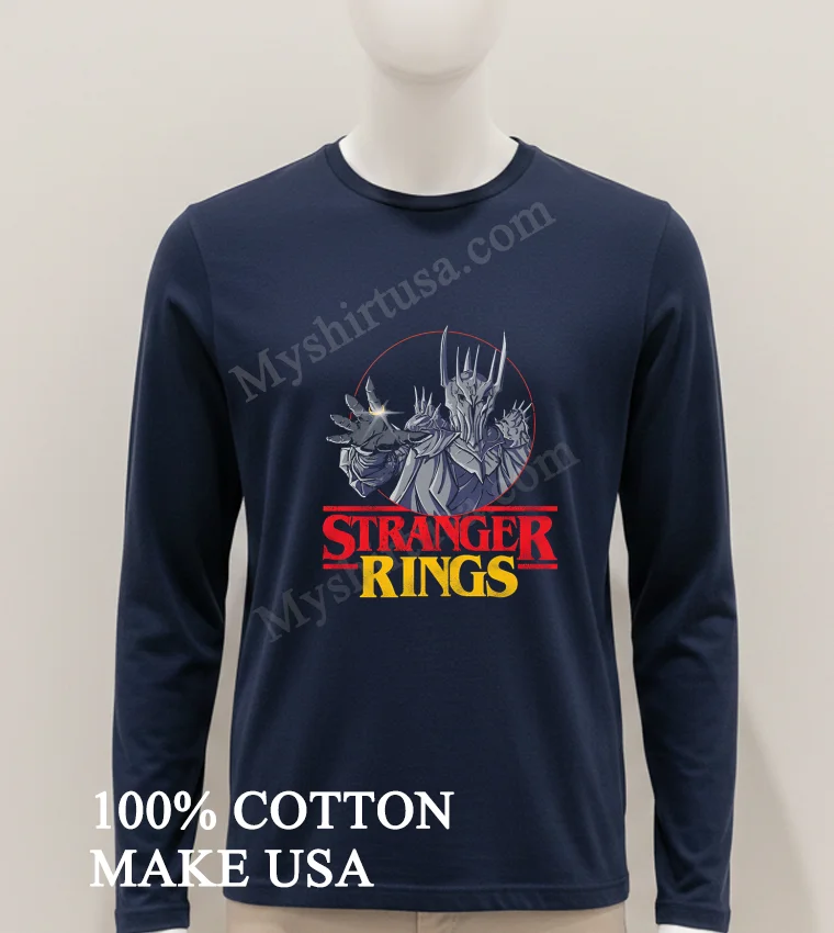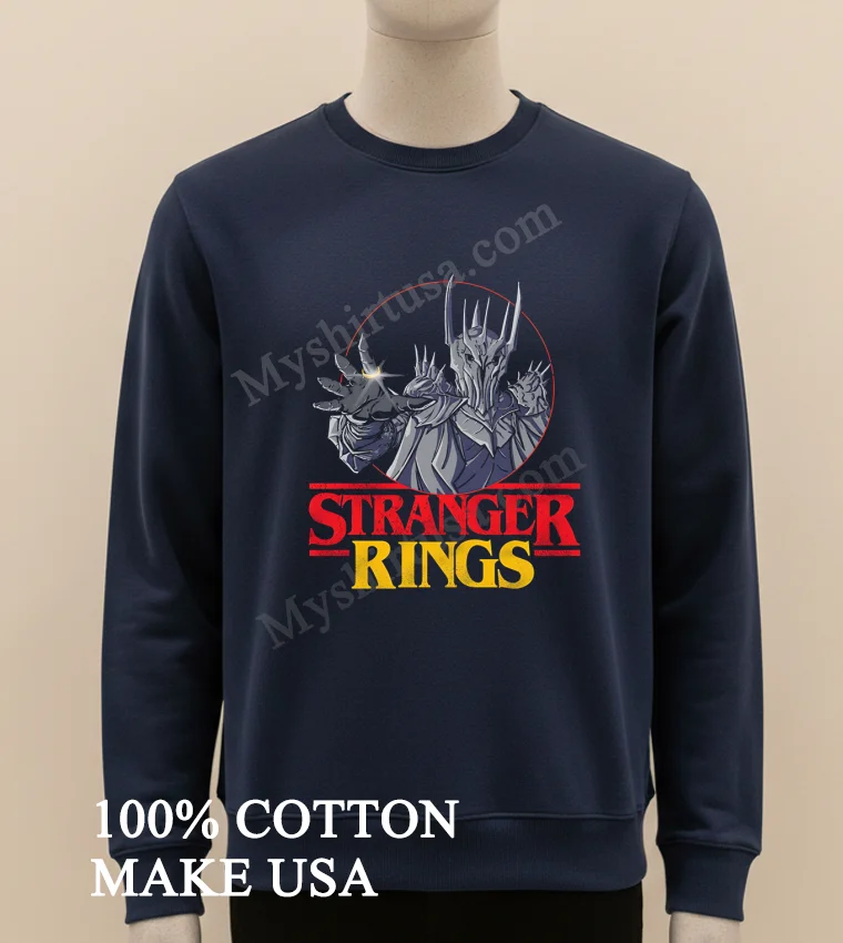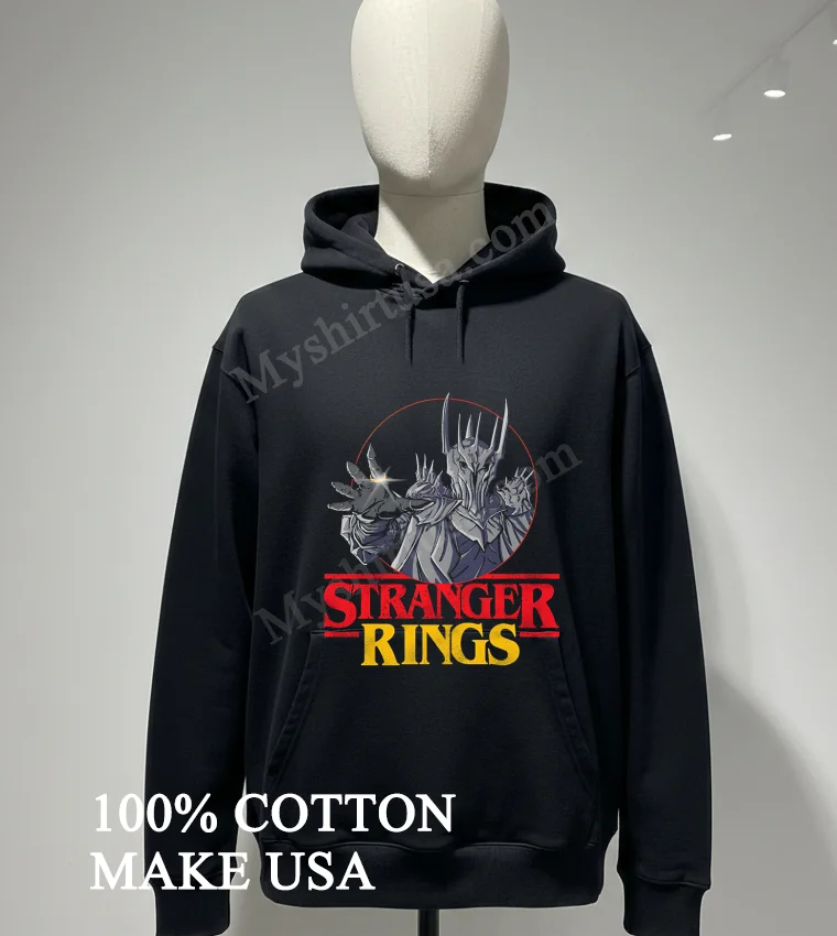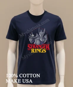 Are you tuned into the latest happenings in pop culture? With major streaming events, comic conventions, and fandom expos buzzing, the demand for unique apparel is skyrocketing. Right now, everyone’s talking about the renewed love for epic fantasy and the unsettling charm of retro sci-fi. At myshirtusa.com, you can effortlessly snag your very own Sauron Stranger Rings Lord Of The Rings Stranger Things Mashup Shirt connecting you directly to the pulse of what’s hot in fan fashion, from Lord of the Rings apparel to Stranger Things fan gear and geek culture mashup tees.