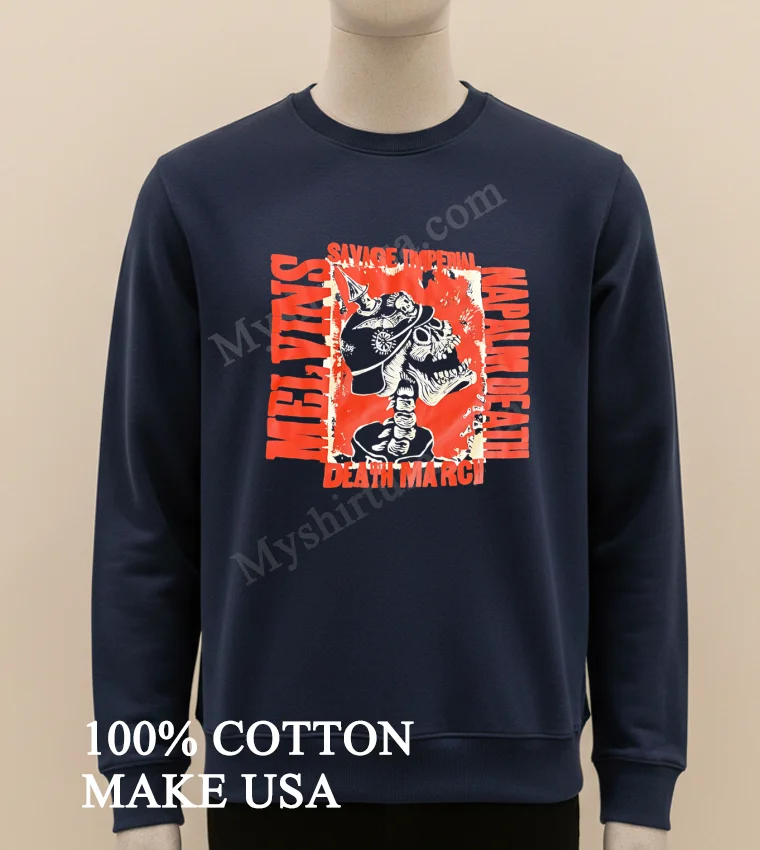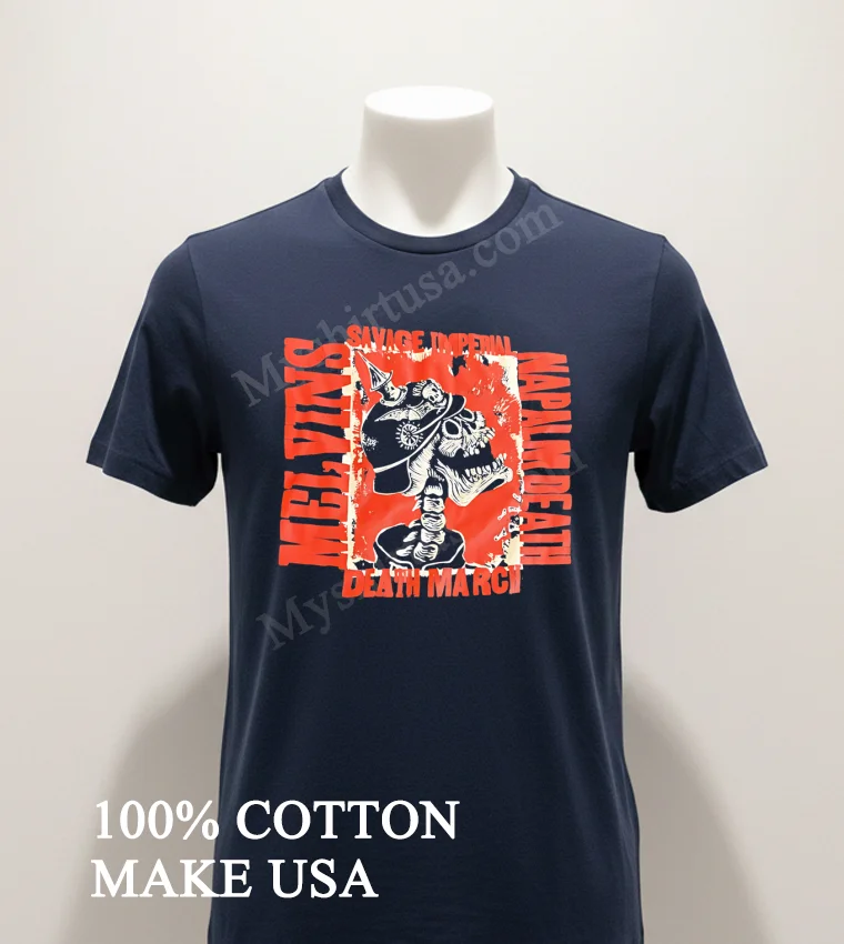 Ready to upgrade your wardrobe with a tee that makes a statement? Why settle for anything less than quality, comfort, and killer style? Our Savage Imperial Melvins Napalm Death Skeleton Death March Shirt is crafted from 100% American Cotton, soft, stretchy, and breathable, all for just $23 USD. Get it delivered to your door in 3-5 days in the US. Embrace that authentic Vintage, Streetwear, American style that truly reflects you. Visit Myshirtusa today!
