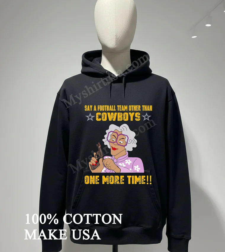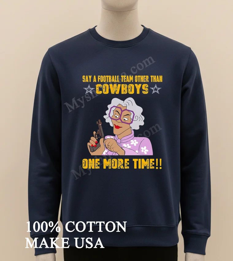 Ready to make a statement without saying a word? Why settle for a plain tee when you can wear a vibe? Grab your Say A Football Team Other Than Cowboys Madea Gun Shirt today and experience the difference of 100% American Cotton, soft, stretchy, and breathable. At just $23, it’s a steal, with delivery in 35 days anywhere in the US. Embrace that Vintage, Streetwear, American style that’s uniquely you, only from Myshirtusa.