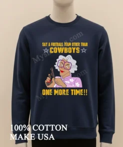 Remember that viral moment after the Super Bowl? Everyone was talking about that celebrity’s post-game rant, how they just wished people would, you know, “talk about literally anything else sometimes.” Well, this Say A Football Team Other Than Cowboys Madea Gun Shirt perfectly captures that hilarious, exasperated mood. It’s for those Sunday gatherings where the football talk just never ends, and you’re ready to politely but firmly steer the conversation elsewhere perhaps to the latest TikTok fashion trends or whether ‘quiet luxury’ is truly dead. This isn’t about being anti-football; it’s about making a playful statement, a nod to pop culture, and frankly, a much-needed laugh. It’s the ultimate ‘if you know, you know’ piece that’s right on time with the current surge in graphic tees becoming statement pieces, proving that fashion doesn’t always have to be serious, especially when it comes to expressing a uniquely American sense of humor.