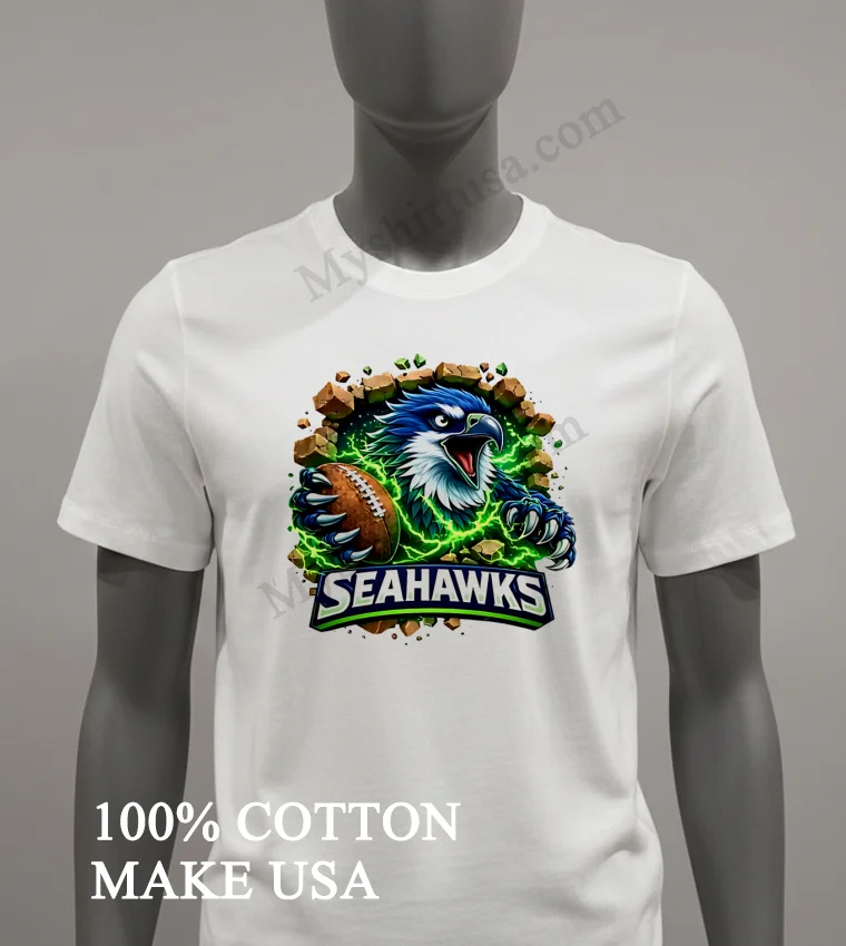 Let’s dive into what makes this tee a standout. The design isn’t just printed on; it’s a narrative. That angry eagle, wings spread, eyes blazing, shattering a brick wall with a football clutched in its talons it’s iconic. It’s dynamic, full of motion, and far more compelling than your average team logo. While other shirts might offer a static crest, this one brings the action right to your chest, showcasing the relentless spirit of the Seahawks. Made from 100% American Cotton, this isn’t some flimsy, scratchy material. It’s soft, breathable, and feels fantastic against the skin, perfect for getting hyped on game day or just chilling on the couch. Its classic crew neck and regular fit offer that ideal American style, easily paired with your favorite distressed jeans and sneakers for a casual streetwear look, or layered under a flannel shirt for those cooler autumn evenings. To keep that fierce eagle looking sharp, always turn the shirt inside out before washing in cold water. Tumble dry on low heat, or better yet, hang it to dry to preserve the print and fit for countless seasons to come. No bleach, ever, unless you want a very sad, faded eagle.