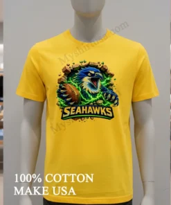 Remember that incredible play during the last big Seahawks game, when the underdog receiver just broke through the entire defense for a game-winning touchdown? The commentators were going wild, social media blew up, and even sports fashion influencers were talking about how that kind of raw power and determination is what “team spirit” is all about. Well, that’s exactly the vibe this shirt captures. It’s not just a logo; it’s an entire statement! It screams ‘never give up’ and ‘we’re coming for that win.’ If you’re heading to the stadium this season, watching with friends, or just want to carry that fierce team energy into your daily grind, this tee is your ultimate uniform. In an era where “quiet luxury” meets “bold self-expression,” this shirt leans hard into the latter, perfectly blending a vintage graphic tee feel with a timeless, passionate declaration of loyalty.