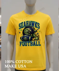 Let’s talk details, because this isn’t just another throwaway tee. The design features a bold, classic Seahawks eagle head helmet and a football, rendered in vibrant blue, green, and that irresistible glitter effect. It’s striking without being over-the-top, giving you a unique edge over those basic logo shirts everyone else is wearing. What really sets it apart? That glitter isn’t just a flat print; it catches the light beautifully, adding a dynamic sparkle that makes the design feel alive. It’s printed on premium, pre-shrunk 100% American cotton trust me, that makes a difference. This fabric feels incredibly soft against the skin, offering that perfect balance of stretch and breathability, ideal for everything from cheering in the stands to just chilling on the couch. Style it with ripped jeans for a true streetwear vibe, or throw it on with some cargo shorts and sneakers for a relaxed, weekend look. Want to keep it looking sharp? Wash it inside out in cold water with similar colors, tumble dry low, and avoid ironing directly on the design. That way, your shirt and its glittery glory will last season after season.