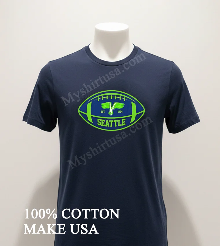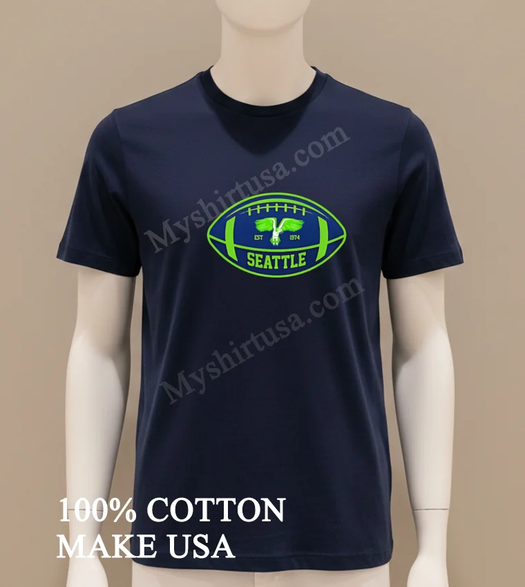 Football season is a year-round passion in America! From draft day debates to pre-season excitement and that thrilling game day roar, this tee connects you to the heart of the sport. It’s perfect for casual wear or showing your spirit during the big games, tailgates, or watch parties. Easily snag your Seattle Football Est 1974 Flying Hawk Inside Football Shape Shirt at myshirtusa.com, your go-to for Seattle football apparel, vintage fan gear, and unique Flying Hawk shirts.