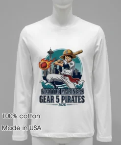 The air was electric. Just last week, after the Mariners clinched a nail-biting win against the Astros, I scrolled through my feed. There it was: an Instagram story from a local Seattle sports radio host, hyping the ‘One Piece Day’ event rumored for 2026, especially if the M’s were making a real playoff push. He even hinted at this very design! That’s when I knew I needed the Seattle Mariners One Piece 2026 Luffy Gear 5 Pirates Shirt. It’s more than just a tee; it’s a cultural statement. Mariners fever is surging, and anime collaborations are dominating street style – a huge trend. From limited-edition drops seen on TikTok to runway looks blending high fashion with pop culture, this crossover appeal is massive. Whether you’re tailgating before a game, hitting a comic con, or just grabbing coffee, this shirt says “I get it.” It’s for the fan living for those unexpected fandom bridges that define today’s fashion, showing off passions without saying a word.