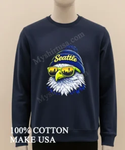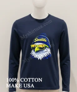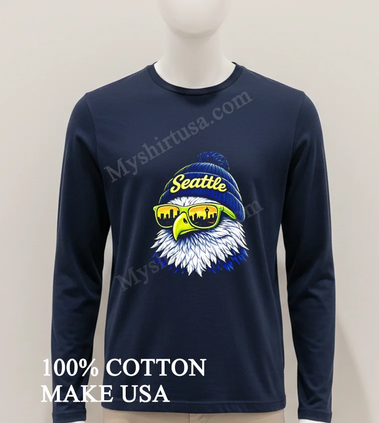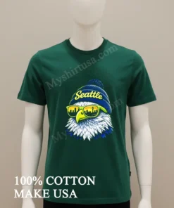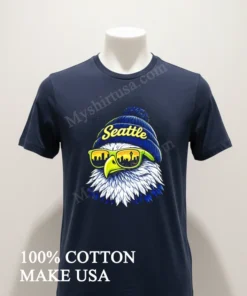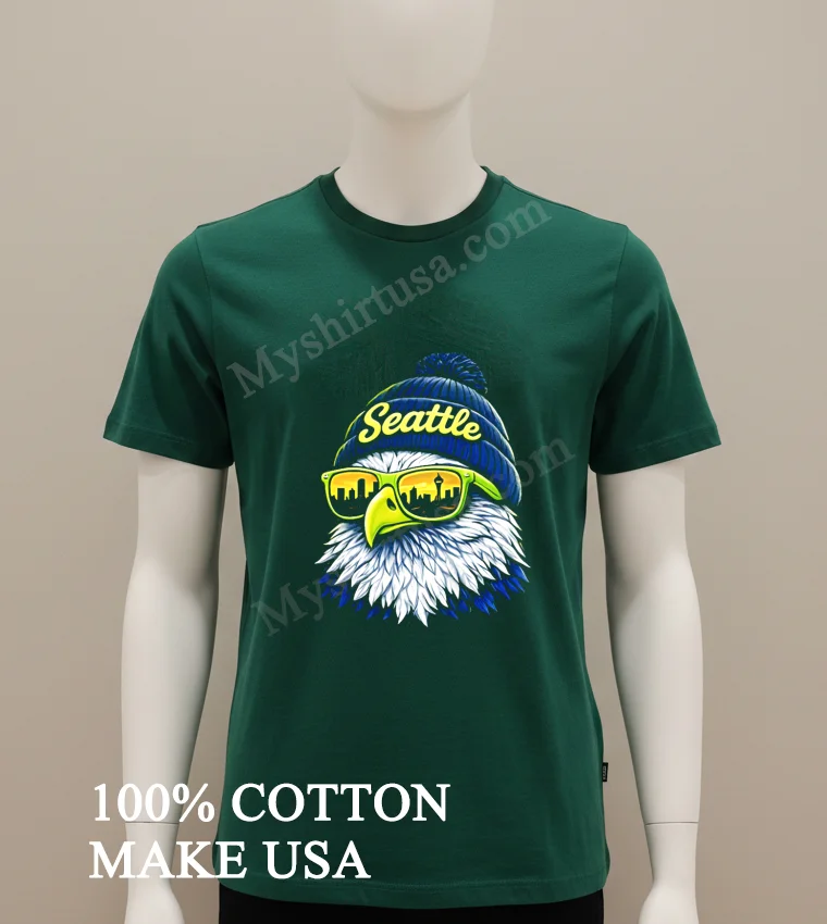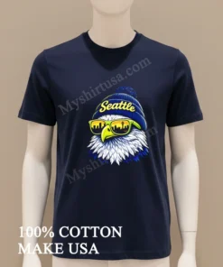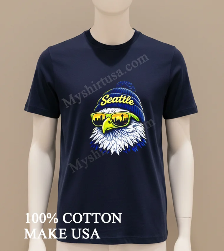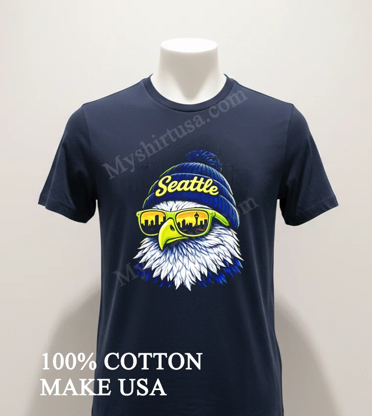 Let’s talk about why this tee isn’t just another shirt in your closet. The design on this bad boy? It’s a masterpiece! That bold Seattle script, the cool eagle head sporting sunglasses that reflect a detailed city skyline it’s visually striking and totally unique. While other tees might give you a generic city outline, this one tells a story, blending urban cool with a touch of rugged Pacific Northwest spirit. Crafted from 100% American Cotton, it feels incredibly soft and breathable, perfect for a casual weekend stroll through Pike Place Market or a bustling concert. I love styling mine with distressed jeans and a flannel tied around the waist for that classic Seattle grunge feel, or dressed up with dark chinos for a sharper streetwear look. To keep that print vibrant and the fabric soft, wash it inside out in cold water, tumble dry low, and skip the harsh bleaches. Trust me, it’s worth the small effort! You’ll find tons of people showing off their Myshirtusa finds on Reddit’s r/streetwear and Instagram under #SeattleStyle, discussing their favorite pairings.