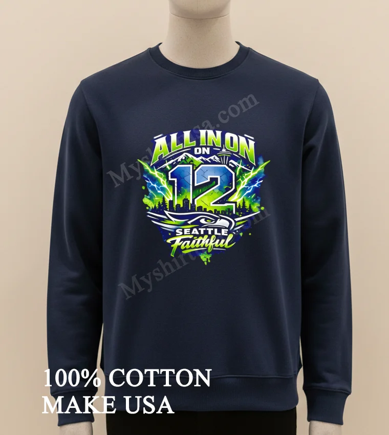 Shop the Seattle Seahawks Football 2026 Champion All In On 12 Seattle Faithful Shirt and more at Myshirtusa!