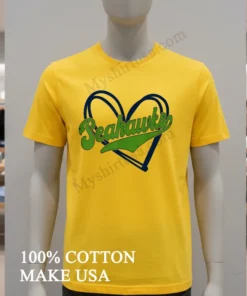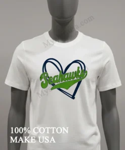 Let’s talk about what makes this tee truly stand out in a sea of basic fan gear. First, the design. It’s not just a standard team logo slapped on a shirt; the “Champion Heart” graphic is a unique, artistic blend of the iconic Seahawks emblem subtly intertwined with a bold, celebratory heart motif, representing both love for the team and the heart of a champion. This thoughtful design elevates it beyond typical merchandise, making it a genuine fashion statement. While other shirts might scream “fan,” this one whispers “stylish fan with foresight.” The material? We’re talking 100% premium American Cotton that’s the good stuff. It feels incredibly soft against your skin, offers just the right amount of stretch for comfort, and is breathable, perfect for those high-tension game moments or just kicking back. Style it effortlessly: throw it on with your favorite distressed denim and a pair of classic white sneakers for an authentic American streetwear look, or layer it under an open flannel shirt for a touch of PNW cool. To keep this gem looking fresh, wash it inside out in cold water, and tumble dry on low or, better yet, hang it to dry. Avoid bleach, and never iron directly on the graphic to protect that awesome design.