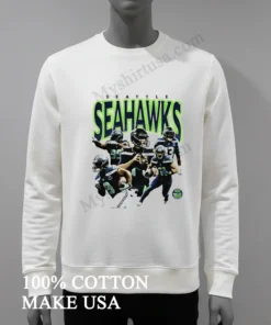 Okay, let’s talk about what makes this T-shirt actually special. Forget those flimsy, cheap tees that lose their shape after one wash or have a graphic that cracks like an old sidewalk. This isn’t that. The design here is a vibrant collage of multiple Seahawks players, expertly layered with a cool, slightly distressed aesthetic that feels authentic, not just printed. It’s got that ‘worn-in favorite’ look straight out of the box, avoiding the stiff, ‘just bought this’ feel. Unlike some designs that are too busy or too bland, this strikes a perfect balance, showcasing your team pride with an artistic edge that stands out from the generic team merchandise you see everywhere. It’s truly a statement piece. The material itself is a dream a premium, ringspun cotton that feels incredibly soft against the skin, not rough or scratchy. It’s breathable, making it ideal for those intense game day moments when you’re on the edge of your seat, or just kicking back on a warm fall afternoon. The cut is a modern unisex fit, leaning towards a slightly relaxed, ‘oversized but not sloppy’ vibe that’s super popular right now. For styling, honestly, the sky’s the limit. Throw it on with your favorite distressed denim and classic sneakers for a quintessential American casual look. Layer it under an open flannel shirt or a vintage denim jacket when the weather turns cooler. Girls, try knotting it at the waist with high-waisted shorts, or even tuck it into a flowy midi skirt for a surprising street-style twist. And caring for it? Simple. To keep that amazing graphic vibrant and the fabric soft, wash it inside out in cold water with similar colors. Skip the harsh bleaches, please! Tumble dry on low heat or, even better, hang dry to preserve the fabric and print quality for years. This isn’t just a seasonal shirt; treat it right, and it’ll be your go-to game day companion for many seasons to come.
